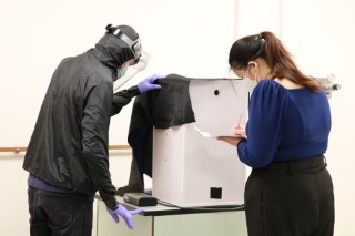 - นางสาวจารุวรรณ พรมสิงห์ นายชยุตม์ เจริญกิจ นักมาตรวิทยากลุ่มงานแสงและสี และดร.ธาดา แก้วประเสริฐ นักมาตรวิทยา กลุ่มงานถ่ายทอดค่ามาตรฐานและความชื้น ฝ่ายมาตรวิทยาอุณหภูมิและแสง มว.
