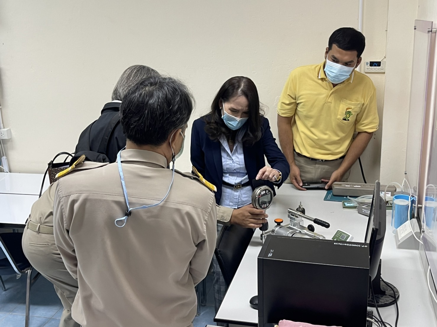 วันที่ 7 กุมภาพันธ์ 2565 : นางอัจฉรา เจริญสุข ผู้อำนวยการ พร้อมด้วยนายอนุสรณ์ ทนหมื่นไวย รองผู้อำนวยการ นายทัศนัย แสนพลพัฒน์ นักมาตรวิทยาเชี่ยวชาญ และ ดร.นฤดม นวลขาว หัวหน้ากลุ่มงานพัฒนาธุรกิจ สถาบันมาตรวิทยาแห่งชาติ (มว.) เดินทางเข้าพบ นายการุญ สุขสุทธิ์ ผู้อำนวยการศูนย์สนับสนุนบริการสุขภาพที่ 12 จ.สงขลา และเจ้าหน้าที่ห้องปฏิบัติการสอบเทียบของ รพ. เพื่อหารือความคืบหน้า ปัญหาและอุปสรรค การร่วมดำเนินโครงการเสริมสร้างความเข้มแข็งด้านมาตรวิทยาการแพทย์แก่ศูนย์สนับสนุนบริการสุขภาพที่ 12 จ. สงขลา พร้อมทั้งเข้าเยี่ยมชมกิจการ และห้องปฏิบัติการสอบเทียบด้านอุปกรณ์การแพทย์ ของหน่วยงานเพื่อนำข้อมูลที่ได้ไปใช้ในการสนับสนุนข้อมูลทางวิชาการและบุคลากรด้านมาตรวิทยาต่อไป