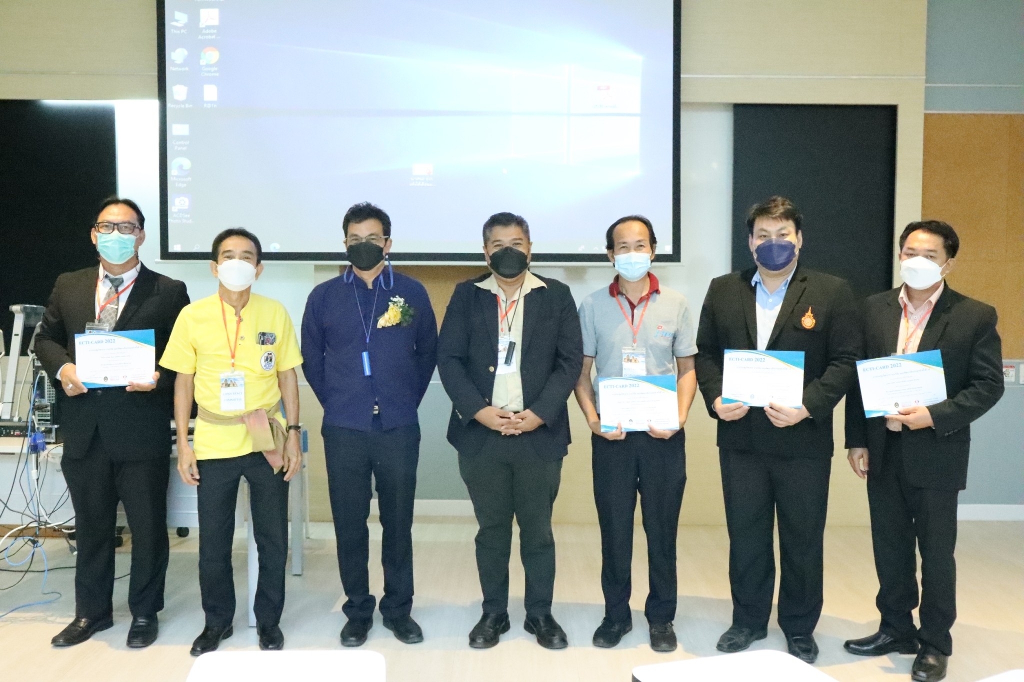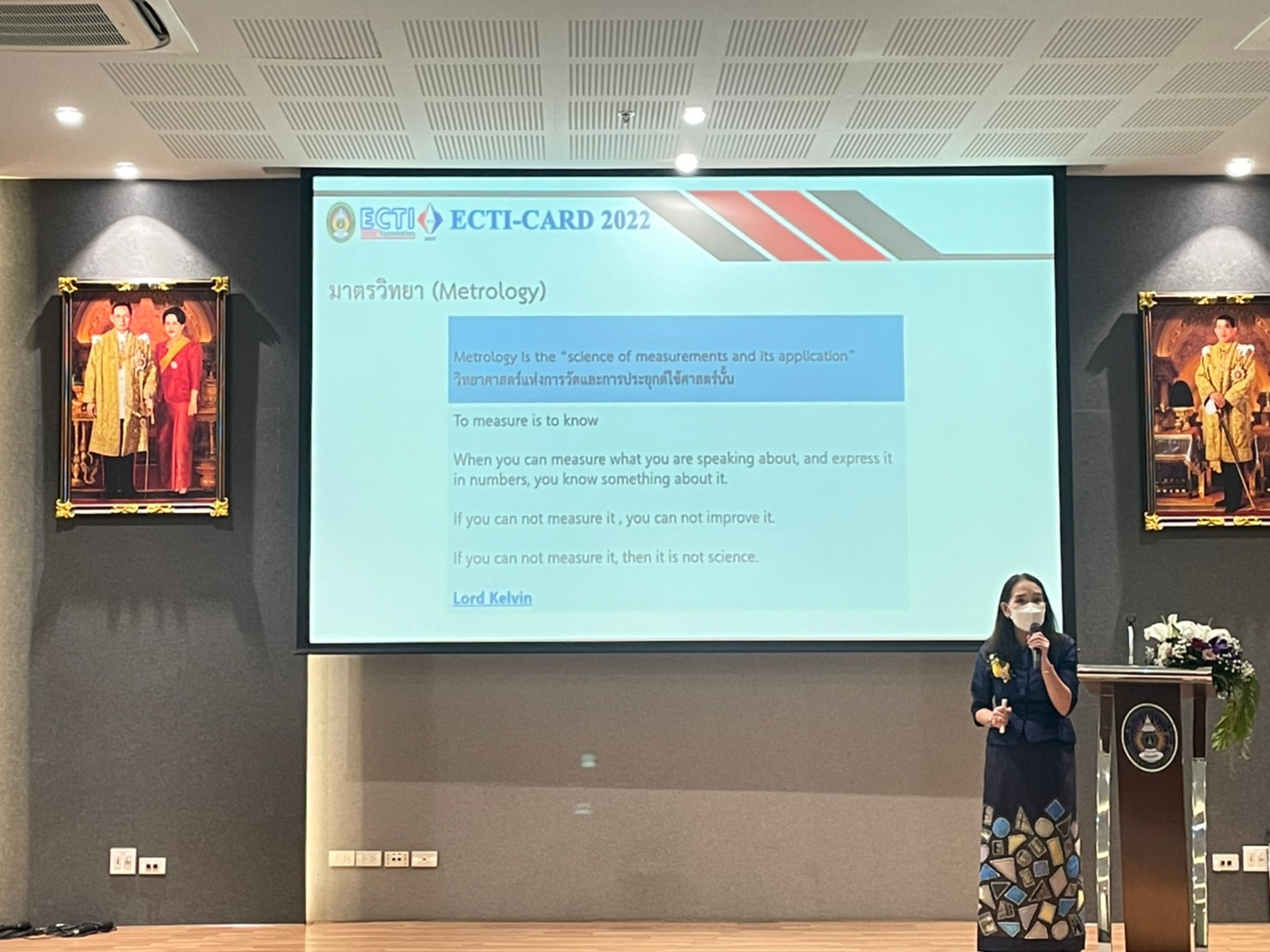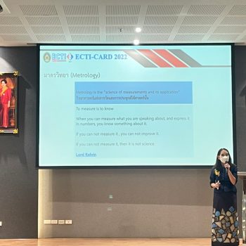 นางอัจฉรา เจริญสุข ผู้อำนวยการสถาบันมาตรวิทยาแห่งชาติ (มว.) และดร.นฤดม นวลขาว หัวหน้ากลุ่มงานพัฒนาธุรกิจ ฝ่ายนโยบายและยุทธศาสตร์ พร้อมด้วยนักมาตรวิทยาและเจ้าหน้าที่ มว. เข้าร่วมงานประชุมวิชาการ งานวิจัย และพัฒนาเชิงประยุกต์ ครั้งที่ 14 (ETCI-CARD 2022) ณ อาคารรัตนเทพสตรี มหาวิทยาลัยราชภัฏเทพสตรี จ.ลพบุรี ซึ่งจัดโดยคณะเทคโนโลยีอุตสาหกรรม มหาวิทยาลัยราชภัฏเทพสตรี ร่วมกับ สมาคมวิชาการไฟฟ้าอิเล็กทรอนิกส์ โทรคมนาคมและสารสนเทศแห่งประเทศไทย และสถาบันมาตรวิทยาแห่งชาติ ที่จัดขึ้นโดยมีวัตถุประสงค์เพื่อรวบรวมผลงานวิจัย บทความวิชาการ งานนวัตกรรม สิ่งประดิษฐ์และพัฒนาการเชิงประยุกต์ รวมถึงเปิดโอกาสให้นักวิจัย ผู้พัฒนา ผู้ใช้งาน และหน่วยงานต่าง ๆ ได้มีโอกาสแลกเปลี่ยนเรียนรู้ทางวิชาการร่วมกัน อีกทั้งสามารถนำผลงานที่นำเสนอไปตีพิมพ์เพื่อเผยแพร่ต่อยอดในระดับท้องถิ่น ระดับสากล และพัฒนาสู่ผลิตภัณฑ์ในเชิงพาณิชย์ได้