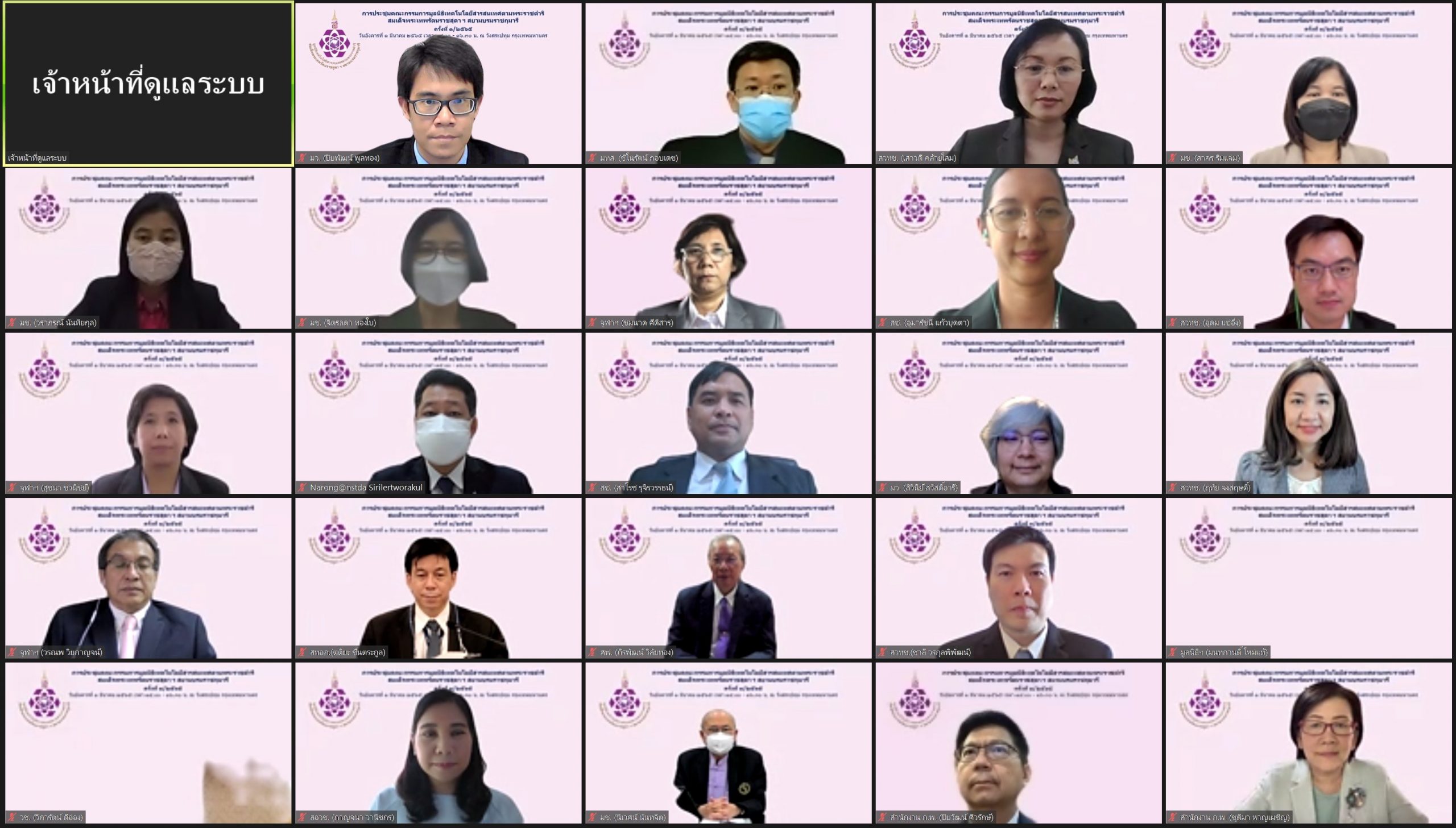 สมเด็จพระกนิษฐาธิราชเจ้า กรมสมเด็จพระเทพรัตนราชสุดาฯ สยามบรมราชกุมารี ทรงเป็นประธานการประชุมคณะกรรมการมูลนิธิเทคโนโลยีสารสนเทศตามพระราชดำริ ครั้งที่ 1 / 2565 ผ่านสื่ออิเล็กทรอนิกส์ออนไลน์ ในวันอังคารที่ 1 มีนาคม 2565 ณ วังสระปทุม โดยมี ดร.สิวินีย์ สวัสดิ์อารี หัวหน้าฝ่ายมาตรวิทยาไฟฟ้า สถาบันมาตรวิทยาแห่งชาติ และ ดร.ปิยะพัฒน์ พูลทอง นักมาตรวิทยาชำนาญการ และผู้แทนจากคณะทำงานโครงสร้างพื้นฐานทางด้านเวลาความถี่ของประเทศไทย สถาบันมาตรวิทยาแห่งชาติ เข้าร่วมการประชุมในครั้งนี้