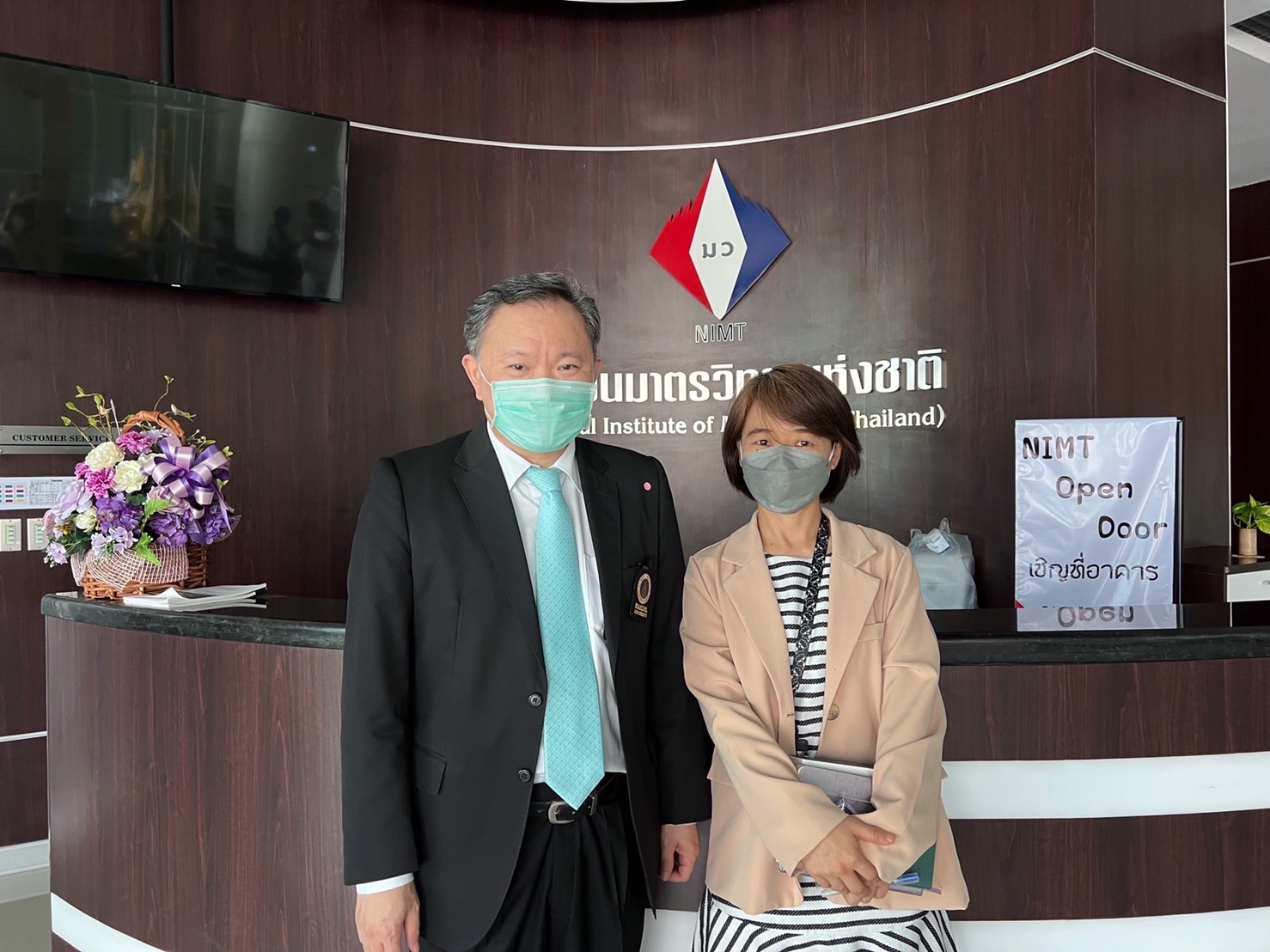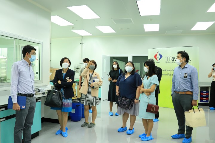 ดร.จรัญ ยะฝา ผู้ช่วยผู้อำนวยการ มว. ดร.นงลักษณ์ ตั้งไพศาลกุล รักษาการหัวหน้าฝ่ายมาตรวิทยาเคมีและชีวภาพ และดร.จีรพา บุญญคง หัวหน้ากลุ่มงานวิเคราะห์อินทรีย์เคมี ฝ่ายมาตรวิทยาเคมีและชีวภาพ ให้การต้อนรับ รศ.ภก.สุรกิจ นาฑีสุวรรณ คณบดี คณะเภสัชศาสตร์ มหาวิทยาลัยมหิดล และคณะ ในโอกาสเข้าเยี่ยมชมห้องปฏิบัติการของสถาบัน และหารือด้านการพัฒนาสารมาตรฐานสมุนไพรร่วมกัน โดยทางคณะเภสัชศาสตร์ มหาวิทยาลัยมหิดล ในฐานะที่มีความเข้มแข็งด้านวิชาการ และได้ดำเนินงานวิจัยด้านสมุนไพรมาอย่างต่อเนื่อง จึงเป็นโอกาสอันดีระหว่างสองหน่วยงานที่จะได้ปรึกษาหารือในความร่วมมือในการพัฒนาสารมาตรฐานที่มีความสำคัญจากสมุนไพรไทยให้เป็นที่ยอมรับในระดับสากล เสริมสร้างขีดความสามารถในการแข่งขันทางการค้าระหว่างประเทศและยังคุ้มครองผู้บริโภคในประเทศอีกด้วย โดยการหารือและเยี่ยมชมห้องปฏิบัติการดังกล่าวจัดขึ้น ณ อาคารมาตรธำรง มว. จ.ปทุมธานี