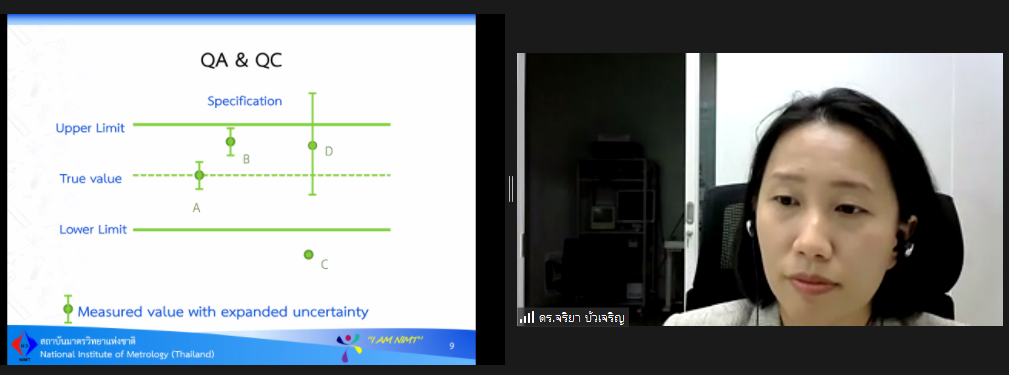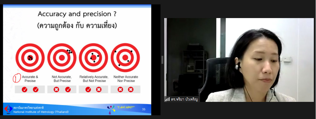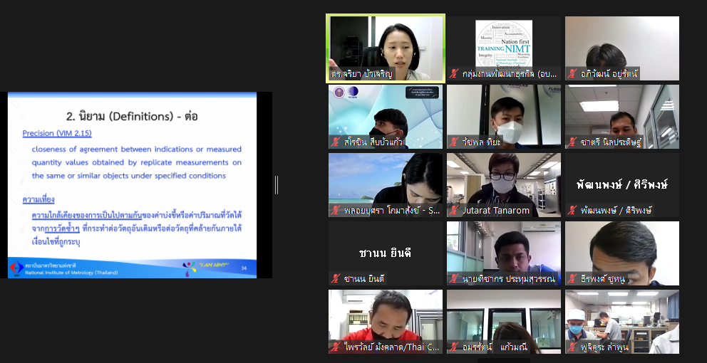ส่วนฝึกอบรม กลุ่มงานพัฒนาธุรกิจ ฝ่ายนโยบายและยุทธศาสตร์ จัดการอบรมหลักสูตรมาตรวิทยาประจำปี 2565 ในรูปแบบออนไลน์ หัวข้อ “ การประเมินค่าความไม่แน่นอนของการวัด รุ่น 3” ที่เป็นหลักสูตรพื้นฐานที่เหมาะสำหรับผู้เข้ารับการฝึกอบรมการสอบเทียบทุกสาขาการวัด (ยกเว้นทางด้านเคมี) บรรยายโดย ดร.จริยา บัวเจริญ หัวหน้าฝ่ายมาตรวิทยามิติ ทั้งนี้เพื่อให้ผู้เข้าอบรมมีความรู้ความเข้าใจแนวทางการประเมินความไม่แน่นอนของการวัดตาม Guide to the expression of uncertainty in measurement (GUM) และสามารถนำความรู้ไปประยุกต์ใช้ในการรายงานผลการทดสอบ หรือผลการสอบเทียบของห้องปฏิบัติการ รวมไปถึงมีความเข้าใจในการรายงานผลความไม่แน่นอนที่ระบุมากับใบรับรองการสอบเทียบ และสามารถนำไปใช้ได้อย่างถูกต้อง โดยผู้เข้าอบรมจะได้เรียนรู้เนื้อหา อาทิ นิยาม แนวคิดพื้นฐาน การประเมินความไม่แน่นอนตามมาตรฐาน ตามแนวทางของ GUM รวมไปถึงการทำแบบฝึกหัด เป็นต้น เพื่อให้สามารถนำความรู้ที่ได้จากการอบรมไปใช้ในการปฏิบัติงานได้จริง ณ ห้องประชุมชั้น 3 อาคารพัฒนามาตรฐานการวัดเพื่อรองรับการพัฒนาระบบราง (มว.) จ.ปทุมธานี