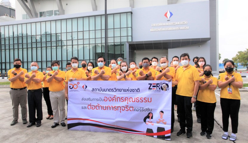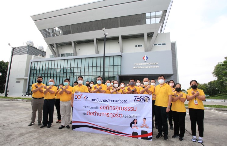 นางอัจฉรา เจริญสุข ผู้อำนวยการ นายอนุสรณ์ ทนหมื่นไวย รองผู้อำนวยการ ร.ท.อุทัย นรนิ่ม ผู้ช่วยอำนวยการ และดร.จรัญ ยะฝา ผู้ช่วยอำนวยการ มว. พร้อมผู้แทนผู้บริหารและพนักงานร่วมรณรงค์ “การประกาศเจตนารมณ์การส่งเสริมการเป็นองค์กรคุณธรรมและต่อต้านการทุจริตคอร์รัปชั่น” ณ อาคารพัฒนามาตรฐานการวัดเพื่อรองรับการพัฒนาระบบราง มว. จ.ปทุมธานี เพื่อให้สถาบันมาตรวิทยาแห่งชาติ เป็นหน่วยงานที่มีบทบาทในการสร้างคนดีเพื่อก้าวไปสู่สังคมที่ดี พร้อมทั้งส่งเสริมให้บุคลากรในองค์กรมีทัศนคติ วิธีคิด และการประพฤติปฏิบัติที่สะท้อนการมีคุณธรรม จริยธรรม และค่านิยมที่ดี เหมาะกับสังคมไทย เป็นสถาบันที่มีคุณค่า มีประสิทธิภาพและประสิทธิผลในการดำเนินงาน เนื่องจากบุคลากรของสถาบันมีคุณธรรมมากขึ้นและจัดให้มีกิจกรรมร่วมรณรงค์อย่างต่อเนื่องทุกปี โดยได้ร่วมกันประกาศเจตนารมณ์และความมุ่งมั่นที่จะดำเนินการส่งเสริมคุณธรรมในองค์กร และเป็นองค์กรที่มีส่วนร่วมสร้างสังคมคุณธรรม มีการบริหารจัดการองค์กรตามหลักคุณธรรม ธรรมาภิบาล และหลักการบริหารกิจการบ้านเมืองที่ดี ส่งเสริมให้บุคลากรในองค์กรยึดมั่นคุณธรรมเป็นฐานในการดำเนินชีวิตและปฏิบัติงาน และมีส่วนร่วมรณรงค์ส่งเสริมคุณธรรมให้กับเครือข่ายของสถาบันให้ครอบคลุมคุณธรรมเป้าหมาย 5 ประการ ดังนี้