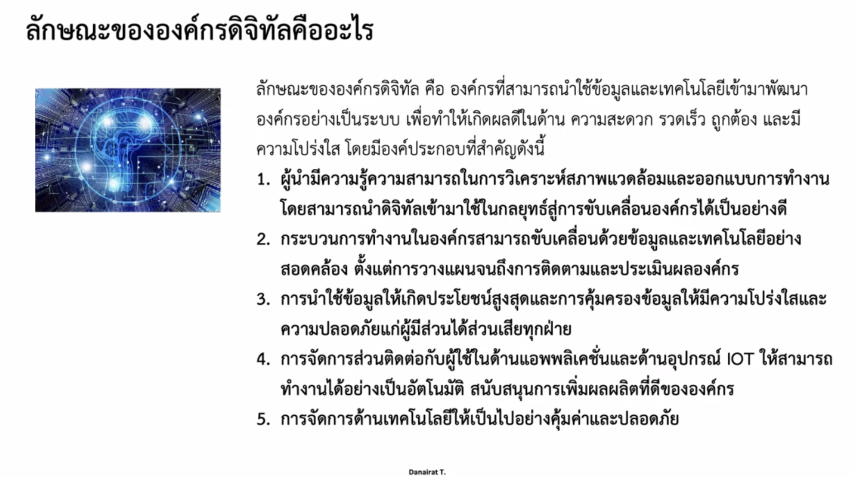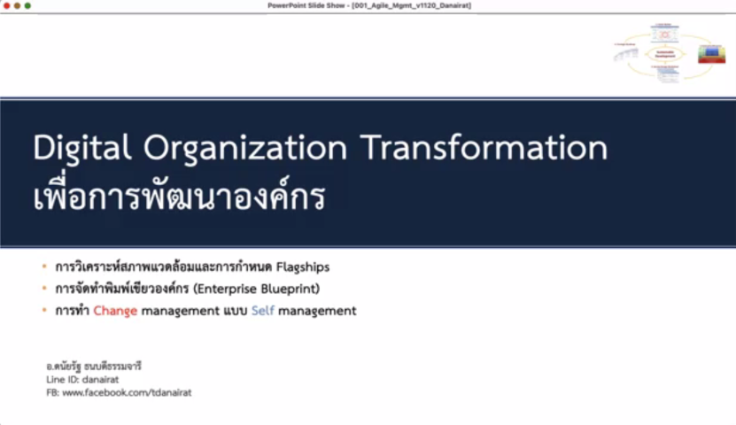 - วิทยากร : ดร.ดนัยรัฐ ธนบดีธรรมจารี Ditigal Transformation and Enterprise Architecture