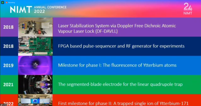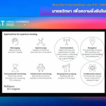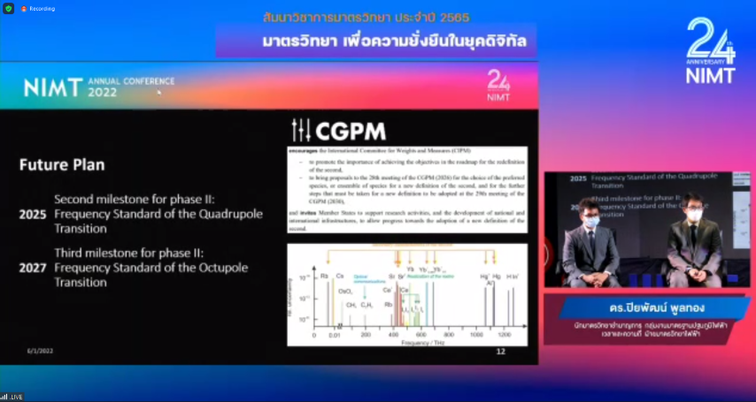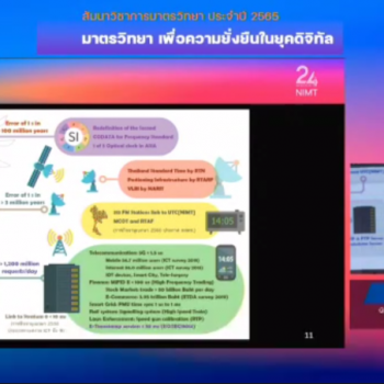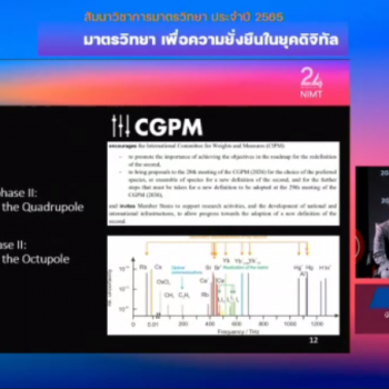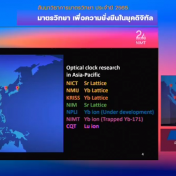 จากนั้นก็เป็นช่วง NIMT ReD Talk: การวิจัยนาฬิกาอะตอมเชิงแสง “ความสำเร็จในการขัง Single Ytterbium ions” เป้าหมาย ความท้าทาย และแผนการทดลองในอนาคต โดย ร.ท.อุทัย นรนิ่ม ผู้ช่วยผู้อำนวยการ มว. ดร.ปิยพัฒน์ พูลทอง นักมาตรวิทยา ประจำห้องปฏิบัติการเวลาและความถี่ ดร.รัฐกร แก้วอ่วม นักวิจัย ผู้เชี่ยวชาญโครงการพัฒนานาฬิกาอะตอมเชิงแสง ฝ่ายมาตรวิทยาไฟฟ้า รวมทั้งการแสดงความคิดเห็น/แสดงความยินดี และชมวิดีทัศน์นาฬิกาอะตอมเชิงแสง ซึ่งกิจกรรมนี้ยังได้ตอบโจทย์ที่ว่า ทำไม มว. จึงต้องสร้างนาฬิกาอะตอมเชิงแสงอีกด้วย จากนั้นก็ต่อด้วยการเยี่ยมชมมาตรฐานการวัดแห่งชาติเพื่อรองรับระบบราง ณ อาคารมาตรฐานการวัดแห่งชาติเพื่อรองรับระบบราง โดยนายอนุสรณ์ ทนหมื่นไวย รองผู้อำนวยการ มว. เป็นการจบกิจกรรมในวันแรกของงานครบรอบ 24 ปี ค่ะ ส่วนงานในวันที่ 2 ของงานครบรอบสามารถติดตามได้ในตอนต่อไปนะคะ