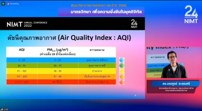 - หัวข้อ TRM เพื่อการสอบเทียบเครื่องมือวัดฝุ่น PM 2.5