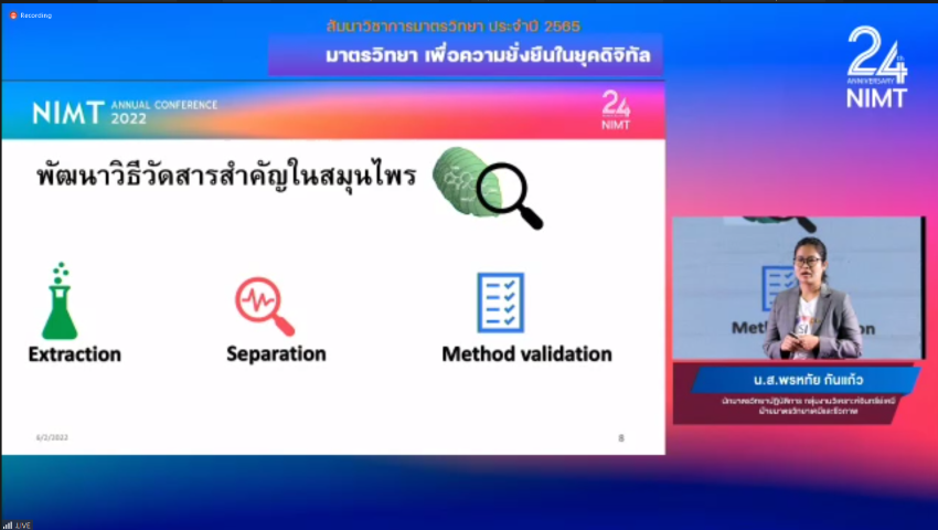 - วิทยากร : ดร.ภัทรภร มอริส นักมาตรวิทยา ฝ่ายมาตรวิทยาเคมีและชีวภาพ