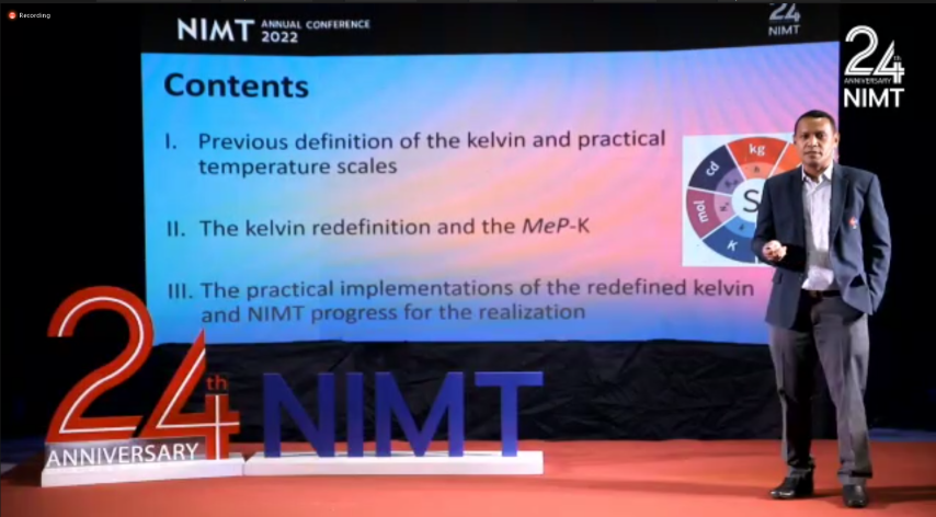 และสำหรับในภาคบ่ายก็จะเป็นหัวข้อ มาตรวิทยาเพื่อเทคโนโลยีอนาคต (Metrology for future technology) เริ่มด้วย Quantum metrology: toward realization of the new SI, Met ReD Talk 7 : ความก้าวหน้าในการสร้างปริมาณทางไฟฟ้าจากปรากฎการณ์ควอนตัม โดย ดร.สิวินีย์ สวัสดิ์อารี หัวหน้าฝ่ายมาตรวิทยาไฟฟ้า Met ReD Talk 8 : ความก้าวหน้าในการสร้างนาฬิกาอะตอมเชิงแสง โดย ดร.ปิยะพัฒน์ พูลทอง นักมาตรวิทยา ฝ่ายมาตรวิทยาไฟฟ้า เยี่ยมชมห้องปฏิบัติการเวลาและความถี่ โดย ร.ท.อุทัย นรนิ่ม Met ReD Talk 9 : Realization of temperature โดย ดร.อธิคม มาน้อย นักมาตรวิทยา ฝ่ายมาตรวิทยาอุณหภูมิและแสง Met ReD Talk 10 : Realization of mass โดย ดร.ชุติมณฑน์ สืบค้า นักมาตรวิทยา ฝ่ายมาตรวิทยาเชิงกล เยี่ยมชมห้องปฏิบัติการ Kibble balance โดย ร.ท.อุทัย นรนิ่ม และช่วง Future Food – Met ReD Talk 11 : แนวทางยกระดับการตรวจสอบการปนเปื้อนของเนื้อสัตว์ในอาหารด้วยเทคนิคทางชีวโมเลกุล โดย ดร.ภัทรภร มอริส นักมาตรวิทยา ฝ่ายมาตรวิทยาเคมีและชีวภาพ ต่อด้วยการเยี่ยมชมห้องปฏิบัติการชีววิทยา โดย ดร.จรัญ ยะฝา และช่วงสุดท้าย Digital Transformation – Met ReD Talk 12 : มาตรวิทยาในยุคดิจิทัล โดย ดร.จริยา บัวเจริญ Met ReD Talk 13 : loT & Smart farming โดย นายพิเชษ วงษ์นุช นักมาตรวิทยา ฝ่ายมาตรวิทยาอุณหภูมิและแสง และหัวข้อสุดท้ายก่อนปิดการสัมมนา Met ReD Talk 14 : เทคโนโลยีหุ่นยนต์ การวัดและการสอบเทียบ โดยนายภาวัต เผือกน้อย หัวหน้ากลุ่มงานนวัตกรรมและพัฒนาเครื่องมือวัด
