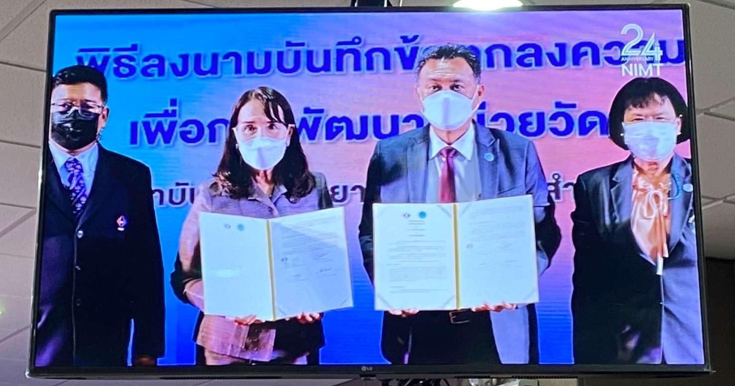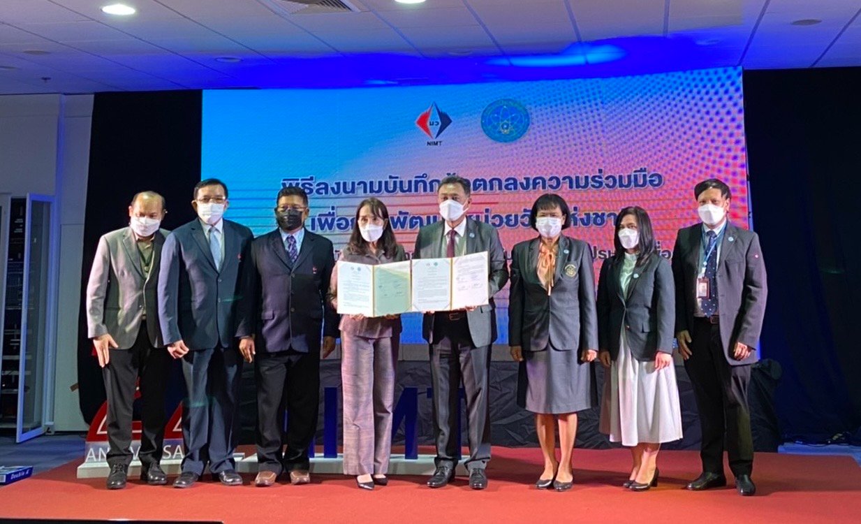 นางอัจฉรา เจริญสุข ผู้อำนวยการสถาบันมาตรวิทยาแห่งชาติ (ผมว.) และ นายเพิ่มสุข สัจจาภิวัฒน์ เลขาธิการสำนักงานปรมาณูเพื่อสันติ (ลสป.) ลงนามในบันทึกข้อตกลงความร่วมมือและแสดงเจตนารมณ์
