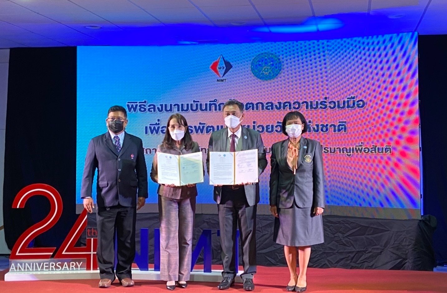 ในการผลักดันความร่วมมือการพัฒนาหน่วยวัดแห่งชาติระหว่างสถาบันมาตรวิทยาแห่งชาติ (มว.) และสำนักงานปรมาณูเพื่อสันติ (ปส.) ภายใต้งานสัมมนาวิชาการมาตรวิทยา ประจำปี 2565 เนื่องในวันสถาปนาสถาบันมาตรวิทยาแห่งชาติ ครบรอบ 24 ปี วันที่ 2 มิถุนายน 2565 ณ อาคารมาตรธำรง สถาบันมาตรวิทยาแห่งชาติ จังหวัดปทุมธานี
