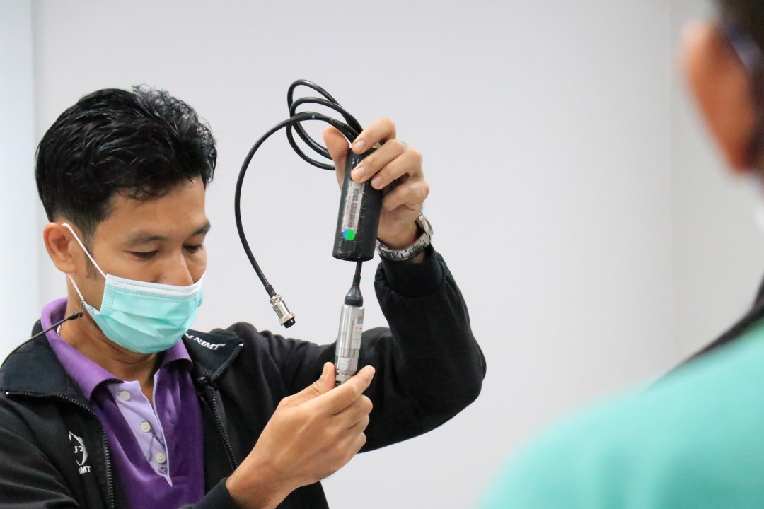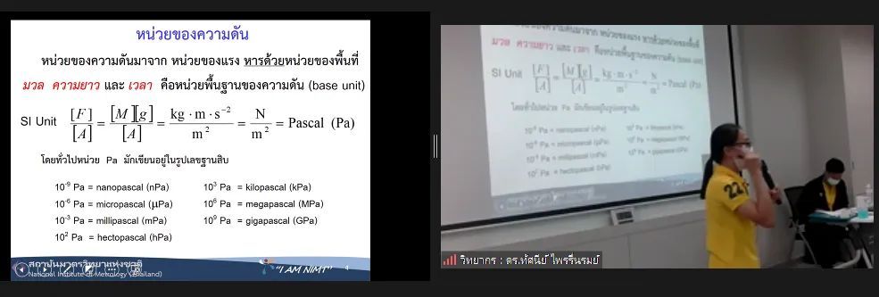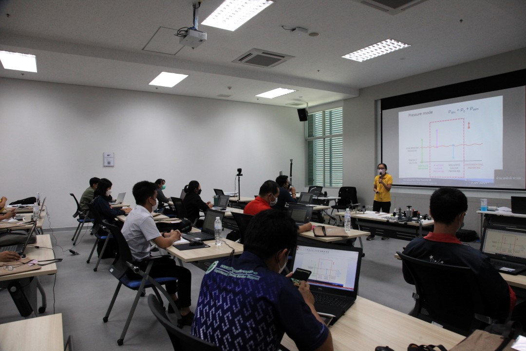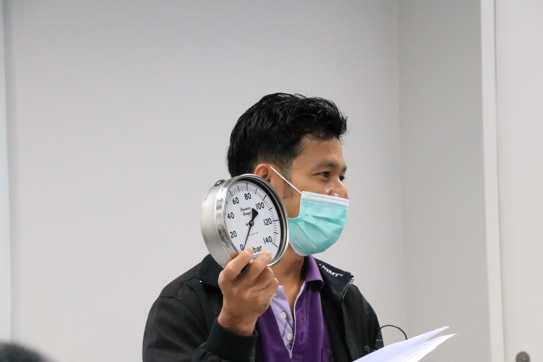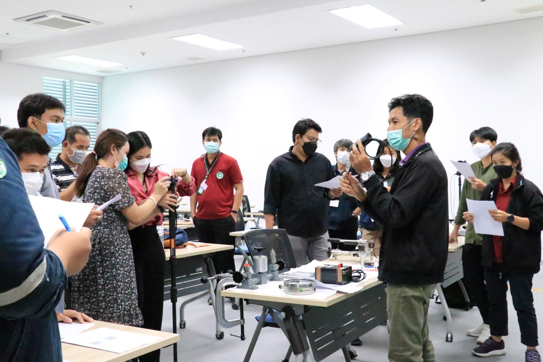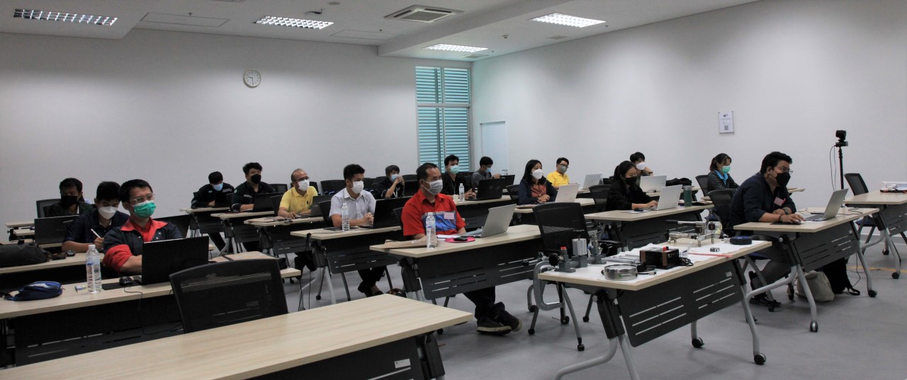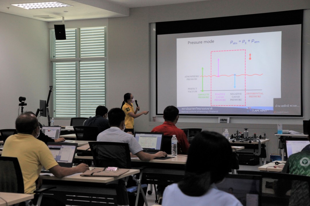 ส่วนฝึกอบรม กลุ่มงานพัฒนาธุรกิจ ฝ่ายนโยบายและยุทธศาสตร์ จัดการอบรมหลักสูตรมาตรวิทยาประจำปี 2565 หลักสูตร “การสอบเทียบเครื่องมือวัดความดันขันพื้นฐาน” ในรูปแบบ Hybrid Learning ที่ให้ผู้เข้าอบรมสามารถเลือกเข้าอบรมแบบ On-site ณ สถาบันมาตรวิทยาแห่งชาติ (คลองห้า) และการอบรมในรูปแบบ Online หรือเลือกที่จะอบรมในเนื้อหาภาคทฤษฎีแบบ Online ควบคู่ไปกับการฝึกภาคปฏิบัติ ณ สถาบันมาตรวิทยาแห่งชาติ ได้ทุกรูปแบบ โดยผู้เข้าอบรมจะสามารถสังเกตได้จากสัญลักษณ์ Hybrid Learning เพื่อให้ผู้เข้าอบรมทั้งจากภาครัฐ เอกชน และอุตสาหกรรม ได้เข้าใจในทฤษฎีของความดัน รวมทั้งหน่วยวัดต่างๆของความดัน และเข้าใจหลักการทำงานของเครื่องมือวัดความดันประเภทต่างๆ รวมไปถึงเข้าใจวิธีการสอบเทียบเครื่องมือวัดความดัน และการประเมินค่าความไม่แน่นอนของผลการสอบเทียบเครื่องมือวัดความดัน เป็นต้น บรรยายโดย ดร.ทัศนีย์ ไพรรื่นรมย์ (วิทยากร) นักมาตรวิทยาชำนาญการ และ นายเชวง คำนวนศักดิ์ (ผู้ช่วยวิทยากร) นักมาตรวิทยาชำนาญการ กลุ่มงานกลศาสตร์ของไหล ฝ่ายมาตรวิทยาเชิงกล โดยผู้เข้ารับการอบรมจะได้เรียนรู้เนื้อหาในภาคทฤษฎี อาทิ ทฤษฎีเบื้องต้น และนิยามความดัน หน่วยวัดและเครื่องมือมาตรฐานความดัน ช่างต่างๆของความดัน และองค์ประกอบอื่นๆที่สำคัญในการสอบเทียบเครื่องมือวัดความดัน ฯลฯ ต่อด้วยการฝึกภาคปฏิบัติ การสอบเทียบเครื่องมือวัดความดัน การคำนวณผลการสอบเทียบ และการประเมินค่าความไม่แน่นอนของการวัด และการออกใบรับรองผลการสอบเทียบ เพื่อให้ผู้เข้าอบรมสามารถนำความรู้ที่ได้รับจากการอบรมไปประยุกต์ใช้ในการปฏิบัติงานได้จริง ณ ห้องประชุมชั้น 3 อาคารพัฒนามาตรฐานการวัดเพื่อรองรับการพัฒนาระบบราง (มว.) จ.ปทุมธานี