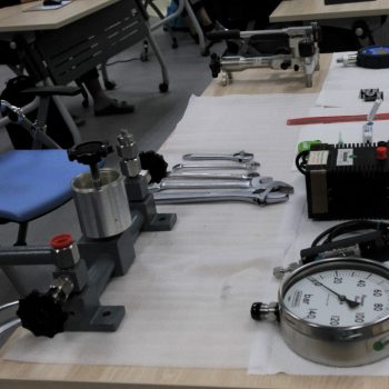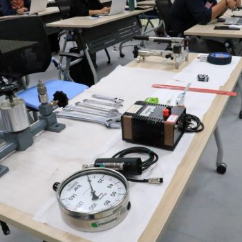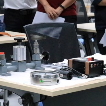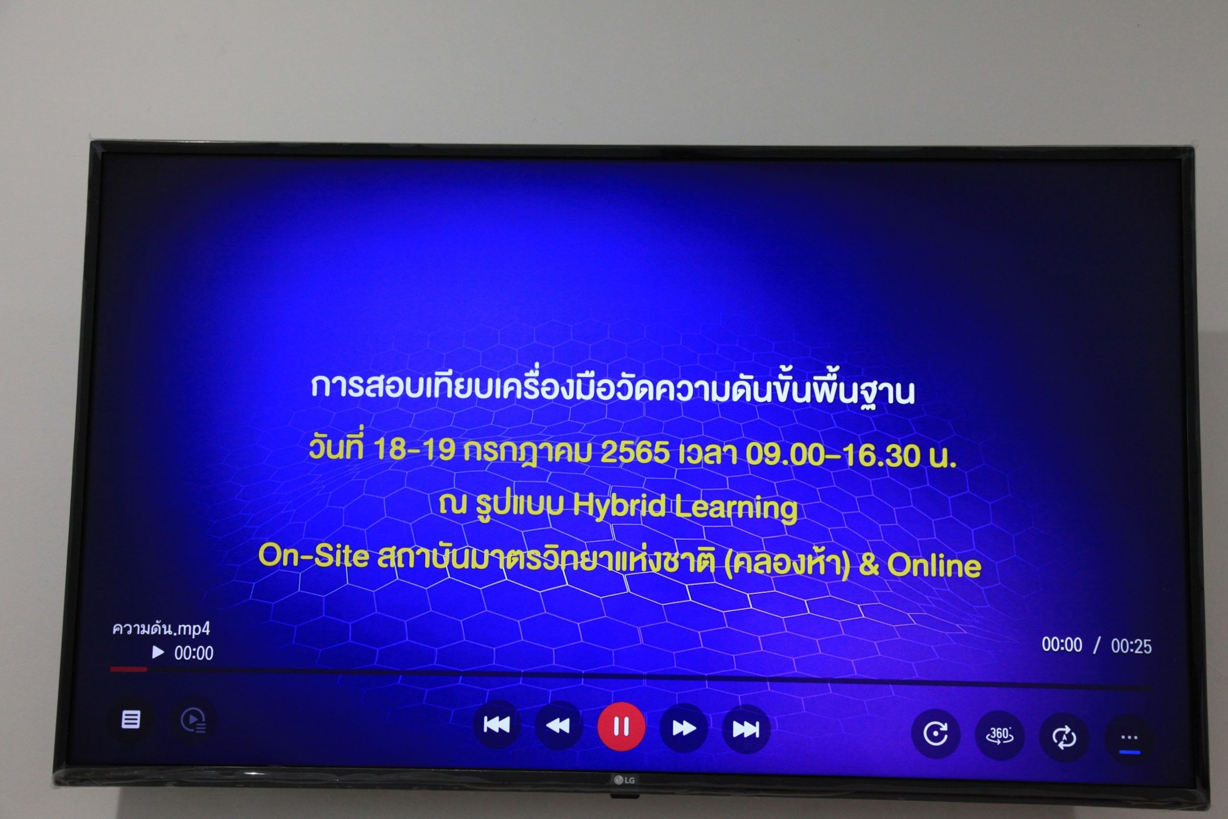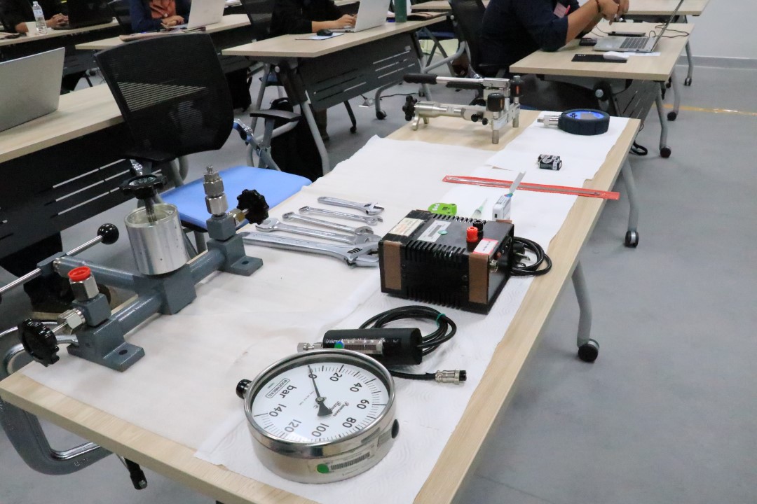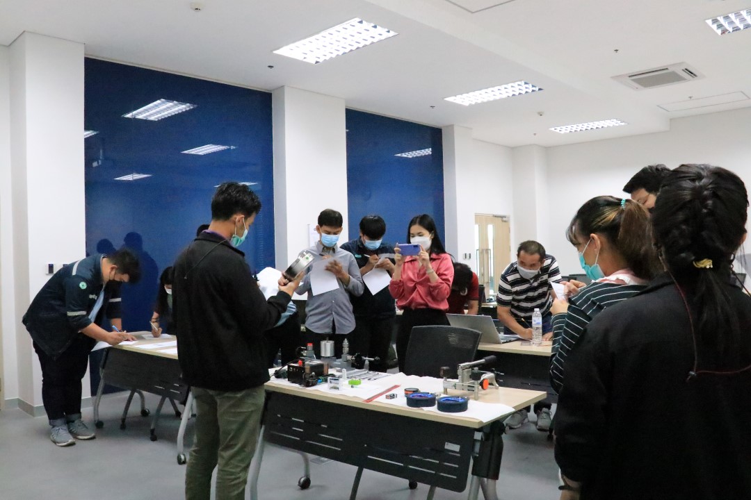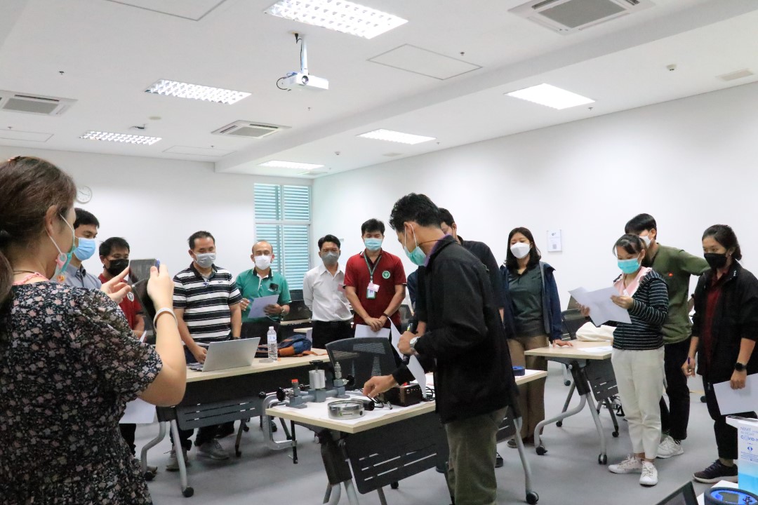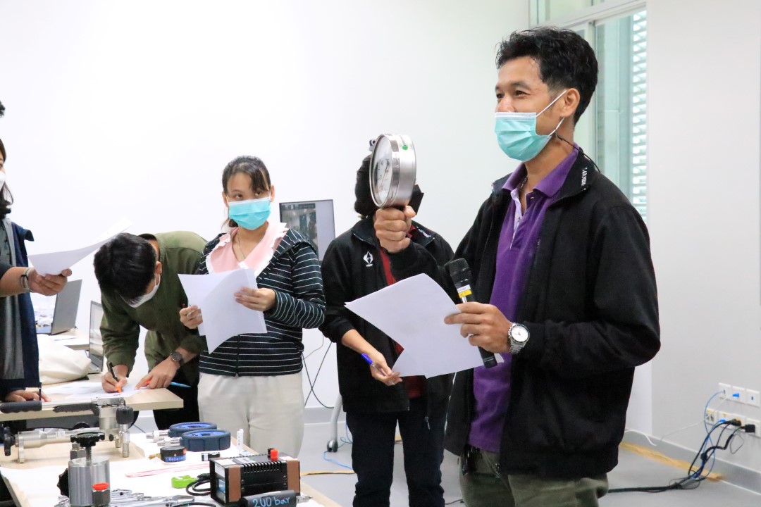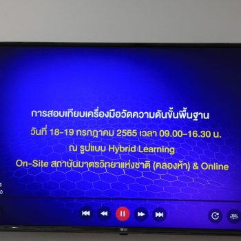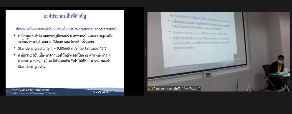 ส่วนฝึกอบรม กลุ่มงานพัฒนาธุรกิจ ฝ่ายนโยบายและยุทธศาสตร์ จัดการอบรมหลักสูตรมาตรวิทยาประจำปี 2565 หลักสูตร “การสอบเทียบเครื่องมือวัดความดันขันพื้นฐาน” ในรูปแบบ Hybrid Learning ที่ให้ผู้เข้าอบรมสามารถเลือกเข้าอบรมแบบ On-site ณ สถาบันมาตรวิทยาแห่งชาติ (คลองห้า) และการอบรมในรูปแบบ Online หรือเลือกที่จะอบรมในเนื้อหาภาคทฤษฎีแบบ Online ควบคู่ไปกับการฝึกภาคปฏิบัติ ณ สถาบันมาตรวิทยาแห่งชาติ ได้ทุกรูปแบบ โดยผู้เข้าอบรมจะสามารถสังเกตได้จากสัญลักษณ์ Hybrid Learning เพื่อให้ผู้เข้าอบรมทั้งจากภาครัฐ เอกชน และอุตสาหกรรม ได้เข้าใจในทฤษฎีของความดัน รวมทั้งหน่วยวัดต่างๆของความดัน และเข้าใจหลักการทำงานของเครื่องมือวัดความดันประเภทต่างๆ รวมไปถึงเข้าใจวิธีการสอบเทียบเครื่องมือวัดความดัน และการประเมินค่าความไม่แน่นอนของผลการสอบเทียบเครื่องมือวัดความดัน เป็นต้น บรรยายโดย ดร.ทัศนีย์ ไพรรื่นรมย์ (วิทยากร) นักมาตรวิทยาชำนาญการ และ นายเชวง คำนวนศักดิ์ (ผู้ช่วยวิทยากร) นักมาตรวิทยาชำนาญการ กลุ่มงานกลศาสตร์ของไหล ฝ่ายมาตรวิทยาเชิงกล โดยผู้เข้ารับการอบรมจะได้เรียนรู้เนื้อหาในภาคทฤษฎี อาทิ ทฤษฎีเบื้องต้น และนิยามความดัน หน่วยวัดและเครื่องมือมาตรฐานความดัน ช่างต่างๆของความดัน และองค์ประกอบอื่นๆที่สำคัญในการสอบเทียบเครื่องมือวัดความดัน ฯลฯ ต่อด้วยการฝึกภาคปฏิบัติ การสอบเทียบเครื่องมือวัดความดัน การคำนวณผลการสอบเทียบ และการประเมินค่าความไม่แน่นอนของการวัด และการออกใบรับรองผลการสอบเทียบ เพื่อให้ผู้เข้าอบรมสามารถนำความรู้ที่ได้รับจากการอบรมไปประยุกต์ใช้ในการปฏิบัติงานได้จริง ณ ห้องประชุมชั้น 3 อาคารพัฒนามาตรฐานการวัดเพื่อรองรับการพัฒนาระบบราง (มว.) จ.ปทุมธานี