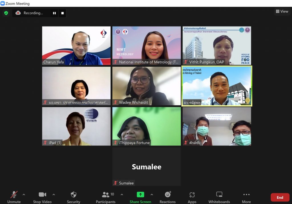 ดร.จรัญ ยะฝา ผู้ช่วยผู้อำนวยการ และกำกับดูแลกลุ่มงานสื่อสารองค์การ (วิเทศสัมพันธ์) ประธานในที่ประชุมพร้อมด้วย ดร.ณัฐพล จารัตน์ และนางสาวธณักพร นนทะชาติ พนักงานวิเทศสัมพันธ์ เลขานุการในที่ประชุมร่วมกับหน่วยงานที่ได้รับมอบหมายเพื่อทำหน้าที่การวัดแทนสถาบันมาตรวิทยาแห่งชาติ ครั้งที่ 3/2565 (Designated Institute Meeting) ซึ่งประกอบด้วย ผู้แทนจากสำนักงานปรมาณูเพื่อสันติ (ปส.) ผู้แทนจากสถาบันวิจัยวิทยาศาสตร์และเทคโนโลยีแห่งประเทศไทย (วว.) และผู้แทนจากกรมวิทยาศาสตร์การแพทย์ (วพ.) การประชุมดังกล่าวจัดขึ้นในรูปแบบออนไลน์ ณ อาคารผดุงมาตร สถาบันมาตรวิทยาแห่งชาติ (มว.) จ.ปทุมธานี