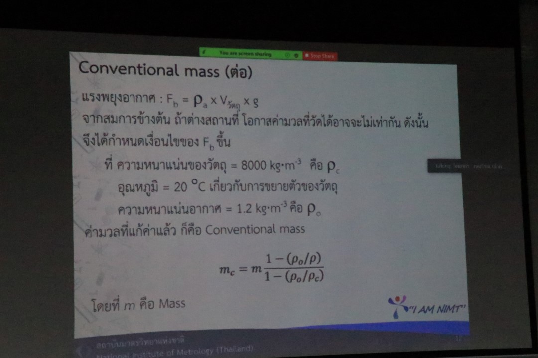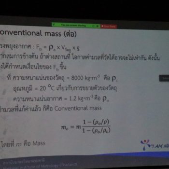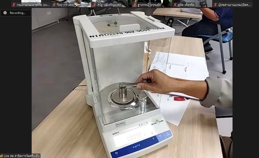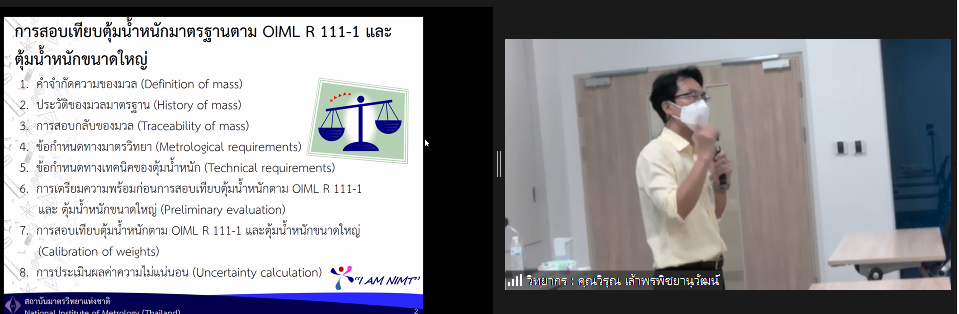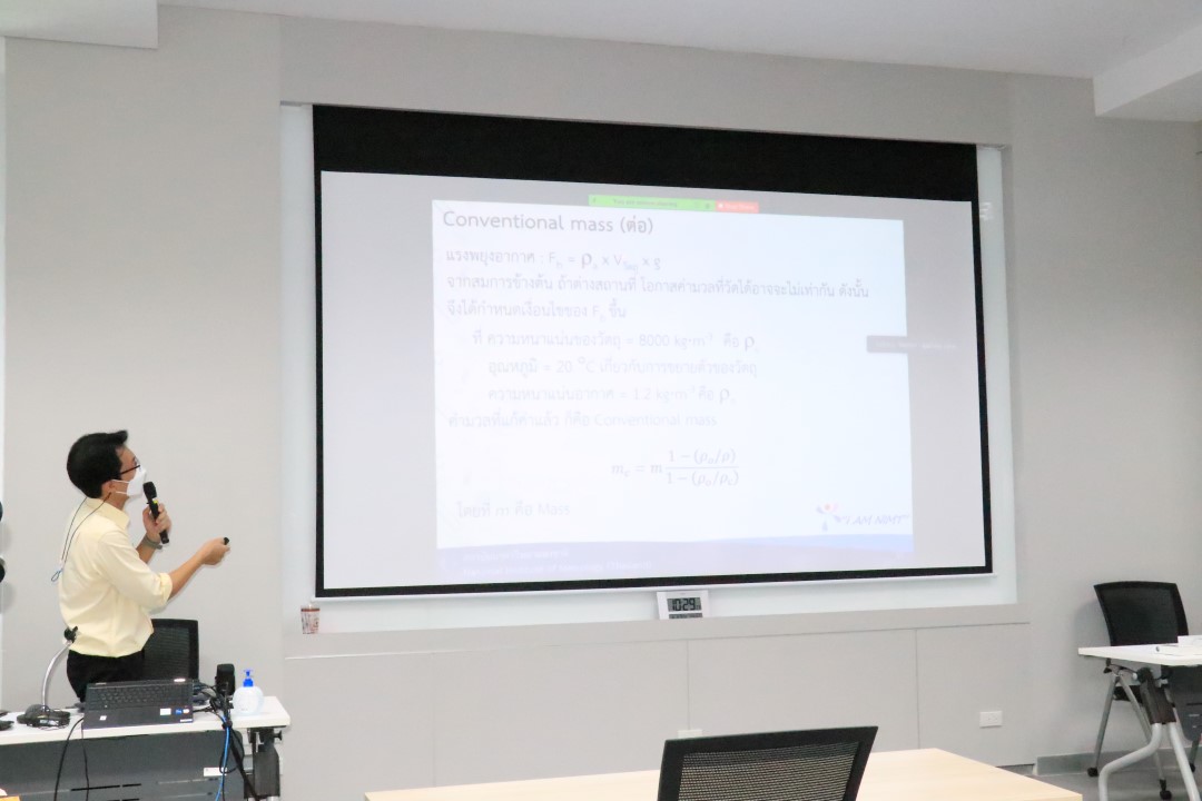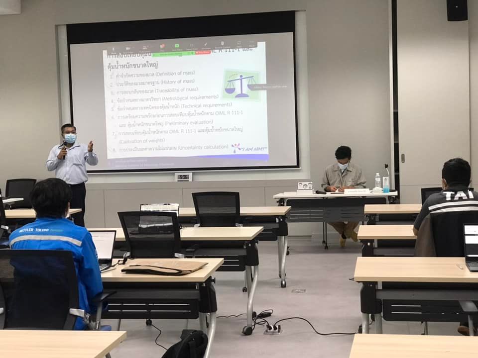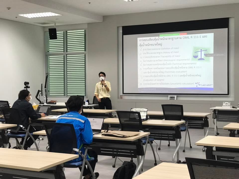 ส่วนฝึกอบรม กลุ่มงานพัฒนาธุรกิจ ฝ่ายนโยบายและยุทธศาสตร์ จัดการอบรมหลักสูตรมาตรวิทยาประจำปี 2565 หลักสูตร “การสอบเทียบตุ้มน้ำหนักมาตรฐานตาม OIML R 111-1 และตุ้มน้ำหนักขนาดใหญ่” ในรูปแบบ Hybrid Learning ที่ให้ผู้เข้าอบรมสามารถเลือกเข้าอบรมแบบ On-site ณ สถาบันมาตรวิทยาแห่งชาติ (คลองห้า) และการอบรมในรูปแบบ Online หรือเลือกที่จะอบรมในเนื้อหาภาคทฤษฎีแบบ Online ควบคู่ไปกับการฝึกภาคปฏิบัติ ณ สถาบันมาตรวิทยาแห่งชาติ ได้ทุกรูปแบบ โดยผู้เข้าอบรมจะสามารถสังเกตได้จากสัญลักษณ์ Hybrid Learning เพื่อให้ผู้เข้าอบรมทั้งจากภาครัฐ เอกชน และอุตสาหกรรม สามารถจำแนกความหมายของ mass, weight, apparent mass และconventional mass ได้ และเข้าใจข้อกำหนดทางด้านมาตรวิทยาและด้านเทคนิคของตุ้มน้ำหนักมาตรฐานตาม OIML R 111-1 ตลอดจนสามารถบอกวิธีการเลือกใช้ การใช้งาน และการบำรุงรักษาตุ้มน้ำหนักมาตรฐานและเครื่องชั่งอิเล็กทรอนิกส์ได้ และสามารถบอกขั้นตอนการสอบเทียบตุ้มน้ำหนักมาตรฐาน (Class E2 and lower) พร้อมทั้งสอบเทียบตุ้มน้ำหนักมาตรฐาน (Class E2 and lower) และคำนวณค่า Conventional Mass เพื่อประเมินค่าความไม่แน่นอนของตุ้มน้ำหนักมาตรฐาน เพื่อให้สามารถออกและอ่านผลจากใบรับรองผลการสอบเทียบได้ บรรยายโดย นายวิรุณ เล้าพรพิชยานุวัฒน์ (วิทยากร) หัวหน้าฝ่ายมาตรวิทยาเชิงกล และนายมนต์ชัย มิตรอารีย์ (ผู้ช่วยวิทยากร) นักมาตรวิทยาชำนาญการพิเศษ กลุ่มงานมาตรฐานปฐมภูมิมวลและปริมาณที่เกี่ยวข้อง ฝ่ายมาตรวิทยาเชิงกล โดยผู้เข้ารับการอบรมจะได้เรียนรู้เนื้อหาทั้งในภาคทฤษฎี และภาคปฏิบัติในการสอบเทียบตุ้มน้ำหนักมาตรฐาน พร้อมทั้งการตอบข้อซัก-ถาม เพื่อให้ผู้เข้าอบรมสามารถนำความรู้ที่ได้ไปประยุกต์ใช้ในการปฏิบัติงานได้จริง ณ ห้องประชุมชั้น 3 อาคารพัฒนามาตรฐานการวัดเพื่อรองรับการพัฒนาระบบราง (มว.) จ.ปทุมธานี