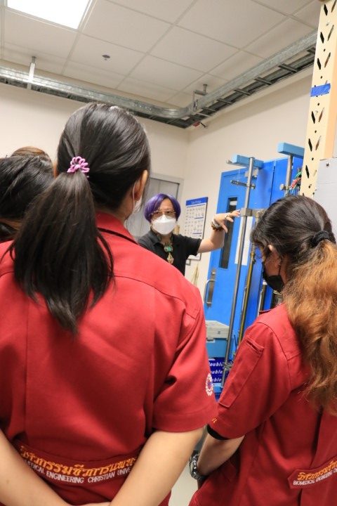 นางสาวจรวยรัตน์ เหย่ากุลบดี หัวหน้าฝ่ายมาตรวิทยาอุณหภูมิและแสง พร้อมด้วย ดร.ธาดา แก้วประเสริฐ กำกับดูแลกลุ่มงานแสงและสี ให้การต้อนรับ อาจารย์ศุภชัย ยิ่งเจริญ และนักศึกษา สาขาวิชาวิศวกรรมชีวการแพทย์ คณะวิทยาศาสตร์สุขภาพ มหาวิทยาลัยคริสเตียน โดยสาขาวิชาวิศวกรรมชีวการแพทย์ ได้จัดการเรียนการสอนรายวิชา TBME3309 การควบคุมคุณภาพและการบำรุงรักษาอุปกรณ์ทางการแพทย์ และเพื่อให้การเรียนการสอบมีประสิทธิภาพ จึงได้จัดให้มีการเยี่ยมชมห้องปฏิบัติการของสถาบันในครั้งนี้ขึ้น ซึ่งนักศึกษาก็จะได้เรียนรู้จากประสบการณ์จริงของนักมาตรวิทยาในแต่ละห้องปฏิบัติการ อันจะเป็นประโยชน์ต่อการปฏิบัติงานในวิชาชีพต่อไปในอนาคต กิจกรรมเยี่ยมชมดังกล่าวจัดขึ้น ณ อาคารผดุงมาตร (มว.) จังหวัดปทุมธานี