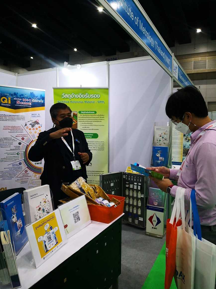 ในโอกาสนี้ มว. ร่วมจัดนิทรรศการแสดงผลงานด้านมาตรวิทยาในการพัฒนามาตรฐานการวัด การผลิตและเพิ่มศักยภาพให้กับห้องปฏิบัติการและภาคอุตสาหกรรม รวมไปถึงการประยุกต์ใช้มาตรวิทยาเพื่อการมีคุณภาพชีวิตที่ดี ความปลอดภัย ความเป็นธรรม และสุขอนามัยของประชาชน พร้อมทั้งนำเสนอผลงาน วัสดุอ้างอิงทางเคมี Thailand Reference Material : TRM และเผยแพร่การจัดทำฐานข้อมูลด้านวัสดุอ้างอิง (ประเทศไทย) : Reference Material Database (Thailand) ให้เป็นที่รู้จักอย่างแพร่หลาย นอกจากนี้ มว.ยังได้ร่วมจัดสัมมนาให้ความรู้ด้านมาตรวิทยากับภาครัฐและภาคเอกชน ในหัวข้อมาตรฐานการวัดสำหรับเทคโนโลยี 5G บรรยายโดย ดร.ศริญญา ปะสะกวี นักมาตรวิทยาชำนาญการ ฝ่ายมาตรวิทยาไฟฟ้า และหัวข้อการควบคุมคุณภาพสารสำคัญของผลิตภัณฑ์สมุนไพร บรรยายโดย ดร.นงลักษณ์ ตั้งไพศาลกุล หัวหน้ากลุ่มงานวิเคราะห์อินทรีย์เคมี รักษาการหัวหน้าฝ่ายมาตรวิทยาเคมีและชีวภาพ และคุณพรหทัย กันแก้ว นักมาตรวิทยา ฝ่ายมาตรวิทยาเคมีและชีวภาพ ณ ห้อง MR222 ศูนย์นิทรรศการและการประชุมไบเทค บางนา กรุงเทพฯ