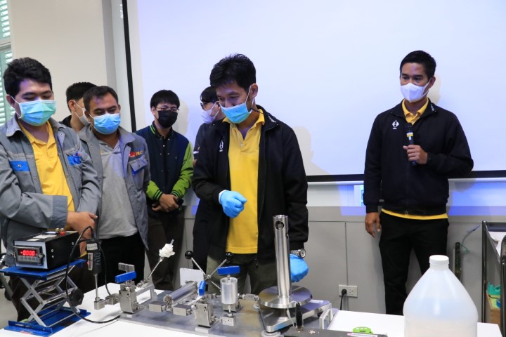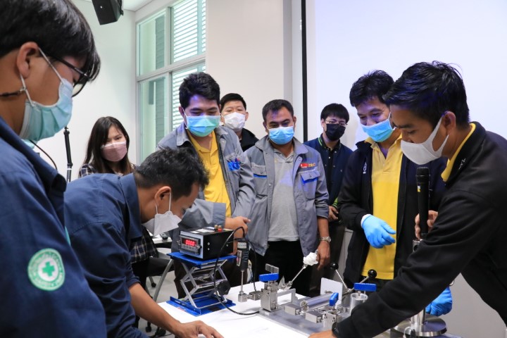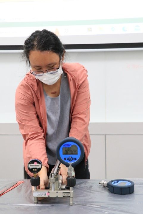 กลุ่มงานกลศาสตร์ของไหล ฝ่ายมาตรวิทยาเชิงกล จัดกิจกรรม workshop เพื่อเสริมสร้างทักษะการสอบเทียบเครื่องมือวัดความดัน โดยกิจกรรมในวันนี้จะมีการแบ่งกลุ่มออกเป็น 2 กลุ่มด้วยกัน ทั้ง 2 กลุ่มจะมีการสาธิตการติดตั้งและสอบเทียบเครื่องวัดความดันประเภท Gas Pressure Gauge โดยใช้ Gas Pressure Gauge ที่มี Accuracy สูงกว่าเป็น Standard และการสาธิตวิธีการติดตั้งและสอบเทียบเครื่องวัดความดันประเภท Hydraulic Pressure Transducer โดยใช้ Hydraulic Pressure Balance เป็น Standard และยังรวมถึงการสาธิตวิธีการคำนวณผลการสอบเทียบเครื่องมือวัดความดันและการประเมินค่าความไม่แน่นอน ตามมาตรฐาน DKD-R 6-1 โดยกิจกรรม workshop นี้เป็นกิจกรรมต่อเนื่องจากสัมมนาวิชาการหัวข้อ “การให้ความรู้เกี่ยวกับการสอบเทียบเครื่องวัดความดัน และการประเมิน CMC” ซึ่งได้จัดขึ้นที่โรงแรมแกรนด์ ฟอร์จูน วัตถุประสงค์ของกิจกรรม workshop นี้เพื่อให้ผู้เข้าร่วมได้เห็นวิธีการติดตั้งและสอบเทียบเครื่องความดันทั้ง 2 ประเภทอย่างใกล้ชิด และเรียนรู้การประเมินความไม่แน่นอนอีกด้วย กิจกรรม workshop ดังกล่าว จัดขึ้น ณ อาคารพัฒนามาตรฐานการวัดเพื่อรองรับการพัฒนาระบบราง ชั้น 3 ห้อง 301 (มว.) จังหวัดปทุมธานี