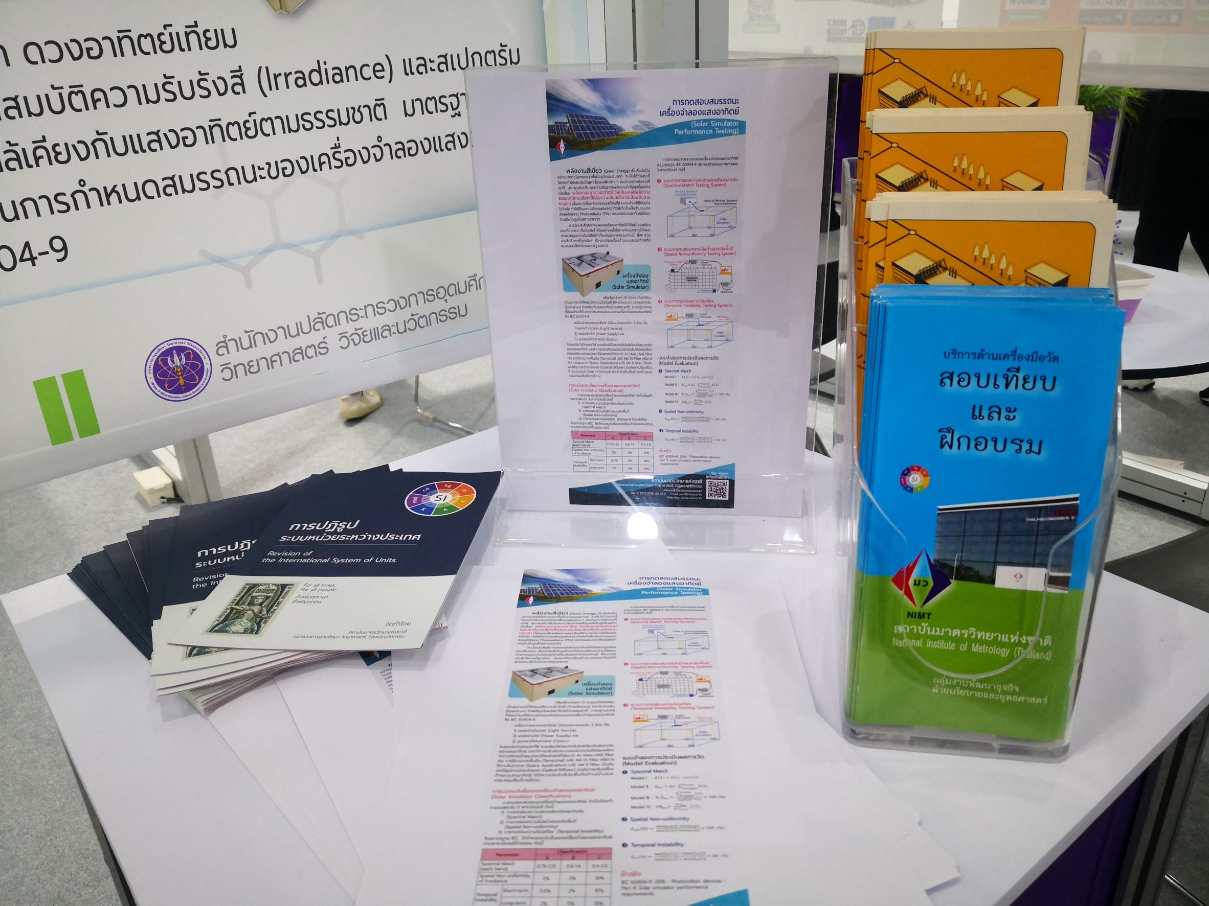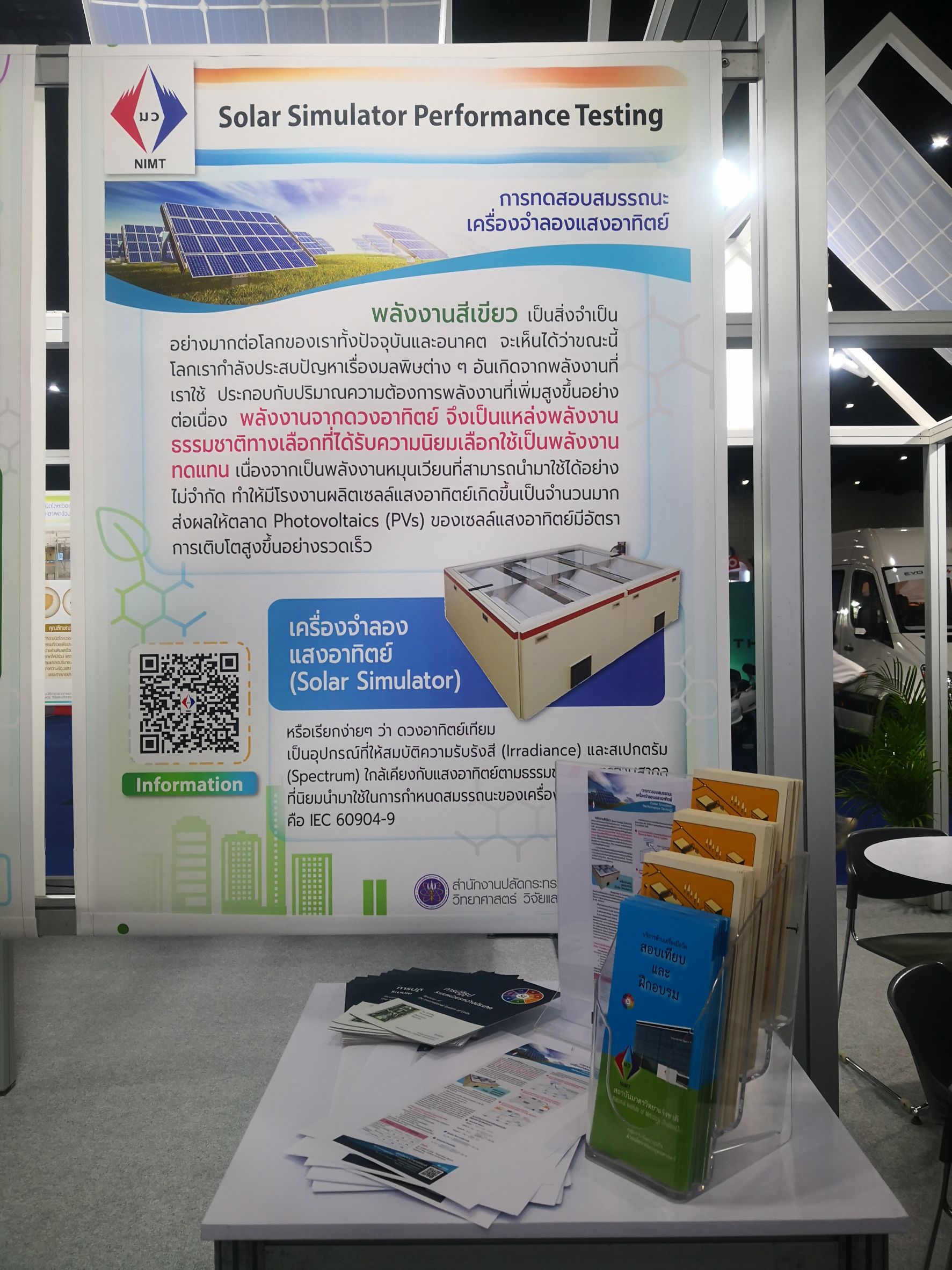 ในการนี้ สถาบันมาตรวิทยาแห่งชาติ (มว.) ร่วมนำเสนอผลงาน “การทดสอบสมรรถนะ เครื่องจำลองแสงอาทิตย์ (Solar Simulator Performance Testing) ที่เป็นอีกหนึ่งผลงานที่ มว.ได้พัฒนามาตรฐานการวัดที่มีความถูกต้องน่าเชื่อถือในระดับประเทศและสากล พร้อมสำหรับถ่ายทอดค่าความถูกต้องให้กับหน่วยงานที่รับผิดชอบทั่วประเทศ ในด้านการวัดปริมาณและคุณภาพ ของพลังงาน ตั้งแต่ พลังงานไฟฟ้า ความร้อน-อุณหภูมิ พลังงานสะอาดแสงอาทิตย์และลม ตลอดจนสารมาตรฐานอ้างอิงทางเคมีและชีวภาพ ที่ใช้สำหรับทดสอบคุณภาพพลังงาน โดยผู้ที่สนใจสามารถเข้าเยี่ยมชมบูธนิทรรศการได้ถึงวันที่ 22 กันยายน 2562 ณ ไบเทค บางนา บูธ A01 หรือเข้าชมนิทรรศการย้อนหลังได้ที่ https://www.facebook.com/TechnoMartThailand