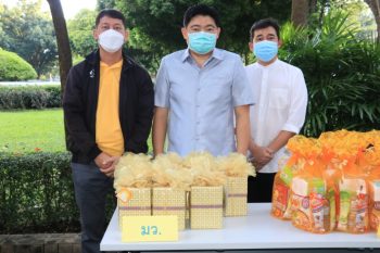 - นายไพโรจน์ รัตนางกูร พร้อมด้วยพนักงาน มว. ร่วมใส่บาตร