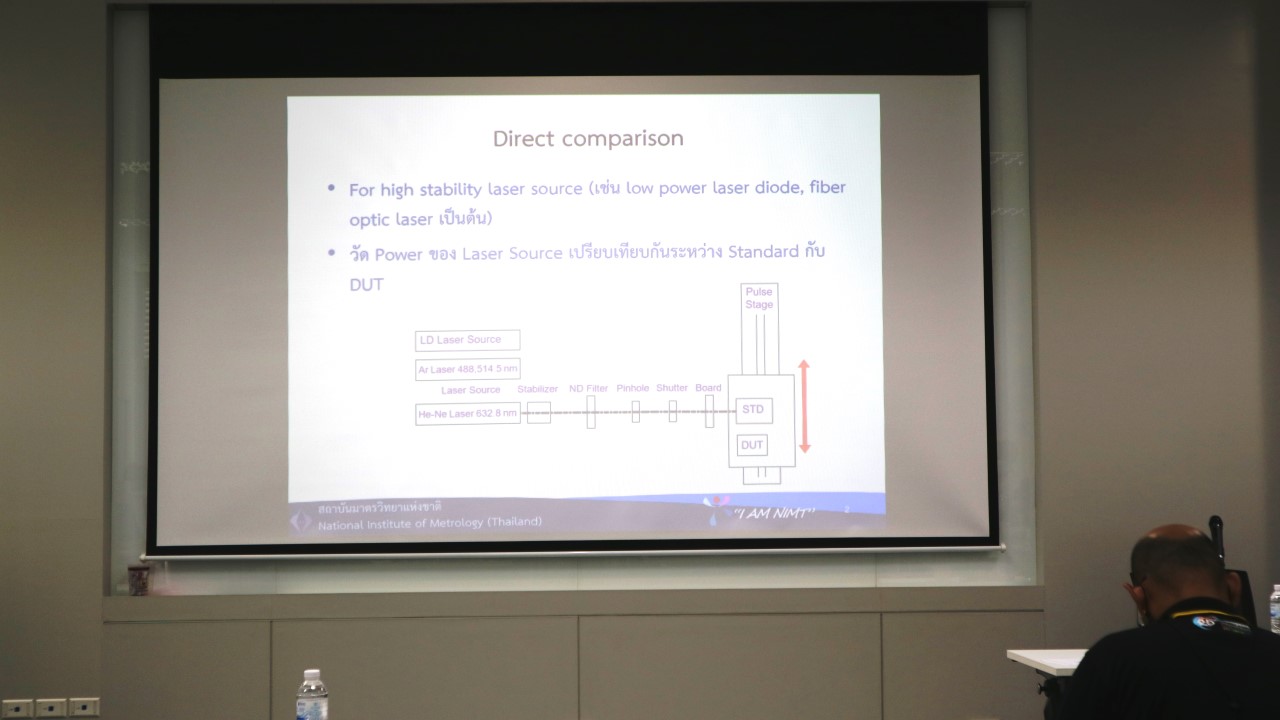ส่วนฝึกอบรม กลุ่มงานพัฒนาธุรกิจ ฝ่ายนโยบายและยุทธศาสตร์ จัดการอบรมหลักสูตรมาตรวิทยาประจำปีงบประมาณ 2566 ในหัวข้อ “ การสอบเทียบ Laser Power Meter” ซึ่งเป็นหลักสูตรที่เหมาะสำหรับบุคคลทั่วไป นักศึกษา หรือผู้ที่สนใจการใช้งาน laser power meter และ เจ้าหน้าที่ทดสอบและสอบเทียบมาตรฐานเครื่องมือวัดทางด้านกำลังเลเซอร์ เพื่อให้ผู้เข้ารับการอบรมทั้งจากภาครัฐ เอกชน และอุตสาหกรรม มีความเข้าใจหลักการและทฤษฎีการสอบเทียบ Laser Power ตลอดจนเข้าใจเทคนิคการวัดและผลกระทบต่อการวัดได้ และสามารถประเมินค่าความไม่แน่นอนของการวัด พร้อมทั้งอ่านใบรายงานผลการสอบเทียบได้ และสามารถนำใบรายงานผลการสอบเทียบไปใช้ได้อย่างถูกต้อง บรรยายโดย ดร.กนกวรรณ นนทพจน์ (วิทยากร) นักมาตรวิทยาชำนาญการพิเศษ กลุ่มงานไฟฟ้ากระแสตรงและความถี่ต่ำความถี่สูงและสนามแม่เหล็ก และ ดร.ปิยพัฒน์ พูลทอง(ผู้ช่วยวิทยากร) นักมาตรวิทยาชำนาญการพิเศษ กลุ่มงานมาตรฐานปฐมภูมิไฟฟ้า เวลาและความถี่ ฝ่ายมาตรวิทยาไฟฟ้า โดยผู้เข้ารับการอบรมจะได้เรียนรู้เนื้อหาทั้งในภาคทฤษฎี และภาคปฏิบัติในการสอบเทียบ Laser Power Meter ณ ห้องประชุมชั้น 3 อาคารพัฒนามาตรฐานการวัดเพื่อรองรับการพัฒนาระบบราง และอาคารผดุงมาตร (มว.) จ.ปทุมธานี