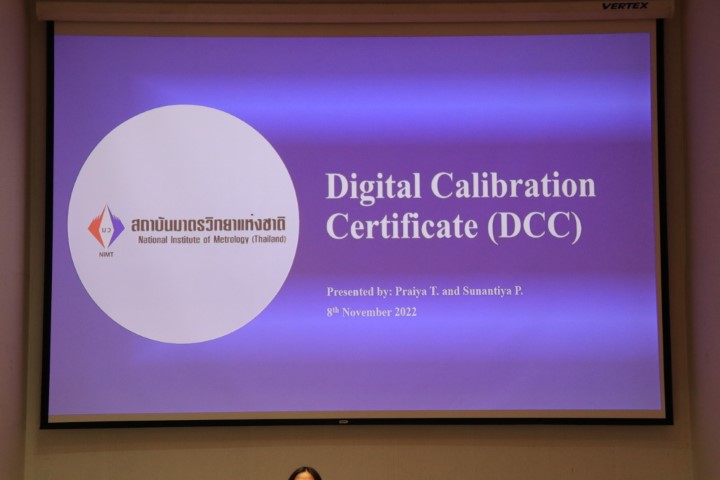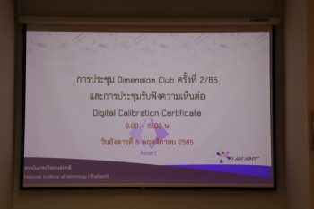 ดร.จริยา บัวเจริญ หัวหน้าฝ่ายมาตรวิทยามิติ เป็นประธานเปิดการประชุม”ชมรมมาตรวิทยามิติ ครั้งที่ 2/2565 และการรับฟังความคิดเห็นต่อใบรับรองผลการสอบเทียบแบบดิจิทัล (Digital Calibration Certificate, DCC)” เริ่มด้วยการรายงานผลการโครงการทดสอบความชำนาญประจำปี พ.ศ. 2565 และแนวทางการดำเนินการแก้ไข โดยฝ่ายมาตรวิทยามิติ ตามด้วยการหารือแผนการดำเนินการกิจกรรมชมรมมาตรวิทยามิติประจำปี และสุดท้ายการบริการมาตรวิทยาในยุค Digital Transformation โดย ดร.นรินทร์ จันทวงศ์ นักมาตรวิทยา ฝ่ายมาตรวิทยามิติ และการประชุมรับฟังความคิดเห็นต่อ “ใบรับรองผลการสอบเทียบแบบดิจิทัล (Digital Calibration Certificate, DCC)” โดย น.ส.ไปรยา ทองเหลือง และ น.ส. สุนันติยา พาระนา นักวิจัยโครงการมาตรวิทยาเพื่อการเปลี่ยนผ่านสู่เศรษฐกิจดิจิทัล กิจกรรมของชมรมดังกล่าวจัดขึ้น ณ ห้องประชุม 226 อาคารสำนักงานกลาง (มว.) คลองห้า จ.ปทุมธานี