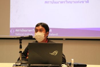 - ดร.จริยา บัวเจริญ หัวหน้าฝ่ายมาตรวิทยามิติ กล่าวเปิดการประชุม