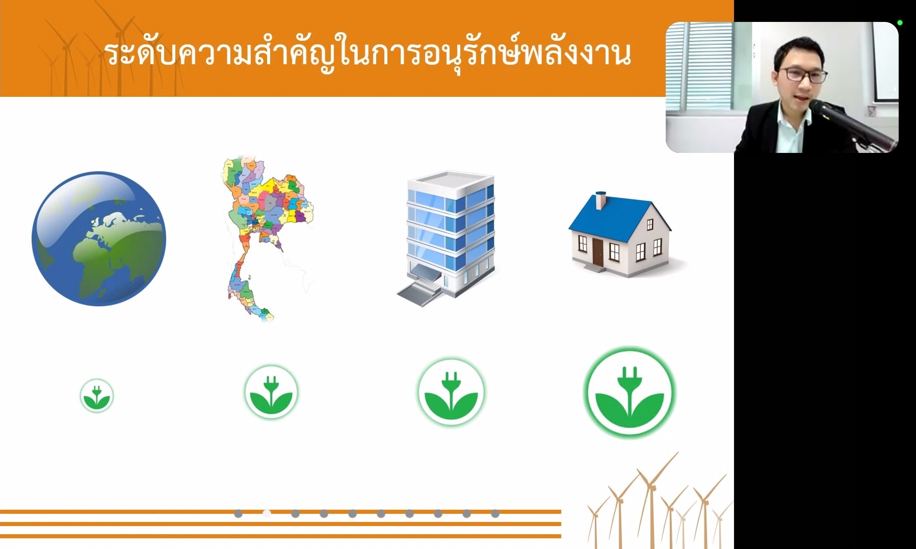 - วิทยากร : คุณพิชชา สุทธิกุล วิศวกรชำนาญการพิเศษ สังกัดกรมพัฒนาพลังงานทดแทนและอนุรักษ์พลังงาน
