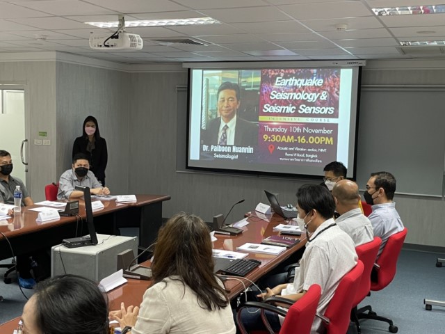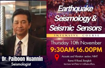 ชมรมมาตรวิทยาเสียงและการสั่นสะเทือน จัดกิจกรรม “อบรมแผ่นดินไหววิทยาและเครื่องมือตรวจวัดแผ่นดินไหว (Earthquake seismology and Seismic sensors)” บรรยายให้ความรู้แก่ผู้สนใจทั้งจากภาครัฐ เอกชน และสมาชิกชมรม โดย อาจารย์ ดร. ไพบูลย์ นวลนิล นักแผ่นดินไหววิทยา อดีตอาจารย์ ภาควิชาฟิสิกส์ คณะวิทยาศาสตร์ มหาวิทยาลัยสงขลานครินทร์ และอดีตรองอธิการบดี ฝ่ายวางแผนและพัฒนา มหาวิทยาลัยราชภัฏสงขลา หัวข้อที่บรรยาย ได้แก่ ทฤษฎีเกี่ยวกับแผ่นดินไหว คลื่นไหวสะเทือน ขนาดของแผ่นดินไหว (Earthquake, Seismic waves, Earthquake sizes) และทฤษฎีเกี่ยวกับแผ่นดินไหวระยะใกล้ แผ่นดินไหวระยะไกล มาตราขนาดโมเมนต์ มาตราวัดความรุนแรงของแผ่นดินไหว (Local and Tele-seismic Earthquakes, Magnitude scales, Intensity scales) รวมทั้งหัวข้อ เครื่องมือตรวจวัดแผ่นดินไหว หัววัดความเร่ง โพล และ ซีโร (Seismometer, Accelerometer, Pole and Zeros) และหัวข้อสุดท้ายที่วิทยากรได้ให้ความรู้ในวันนี้คือหัวข้อ การแปลงข้อมูลแผ่นดินไหวในรูปแบบอะนาล็อกให้อยู่ในรูปแบบดิจิทัล รวมถึงกระบวนการถ่ายโอนข้อมูลแผ่นดินไหว (Digitizer, Data communication) โดยวัตถุประสงค์ของการจัดอบรมในครั้งนี้เพื่อให้ความรู้เกี่ยวกับแผ่นดินไหว เครื่องมือตรวจวัดแผ่นดินไหว ขนาดของแผ่นดินไหว รวมทั้งมาตราวัดความรุนแรงของแผ่นดินไหวอีกด้วย กิจกรรมของชมรมดังกล่าวจัดขึ้น ณ อาคารห้องปฏิบัติการเสียงและการสั่นสะเทือน สถาบันมาตรวิทยาแห่งชาติ (มว.) ถนนพระรามที่ 6 แขวงทุ่งพญาไท เขตราชเทวี กรุงเทพมหานคร