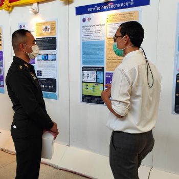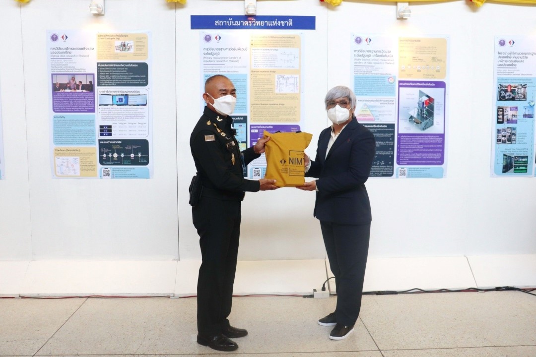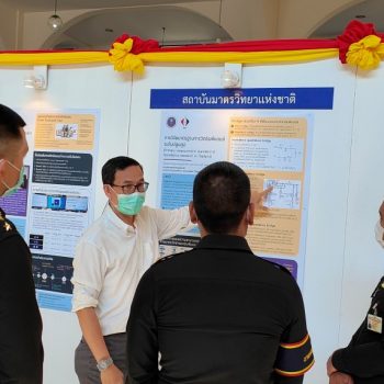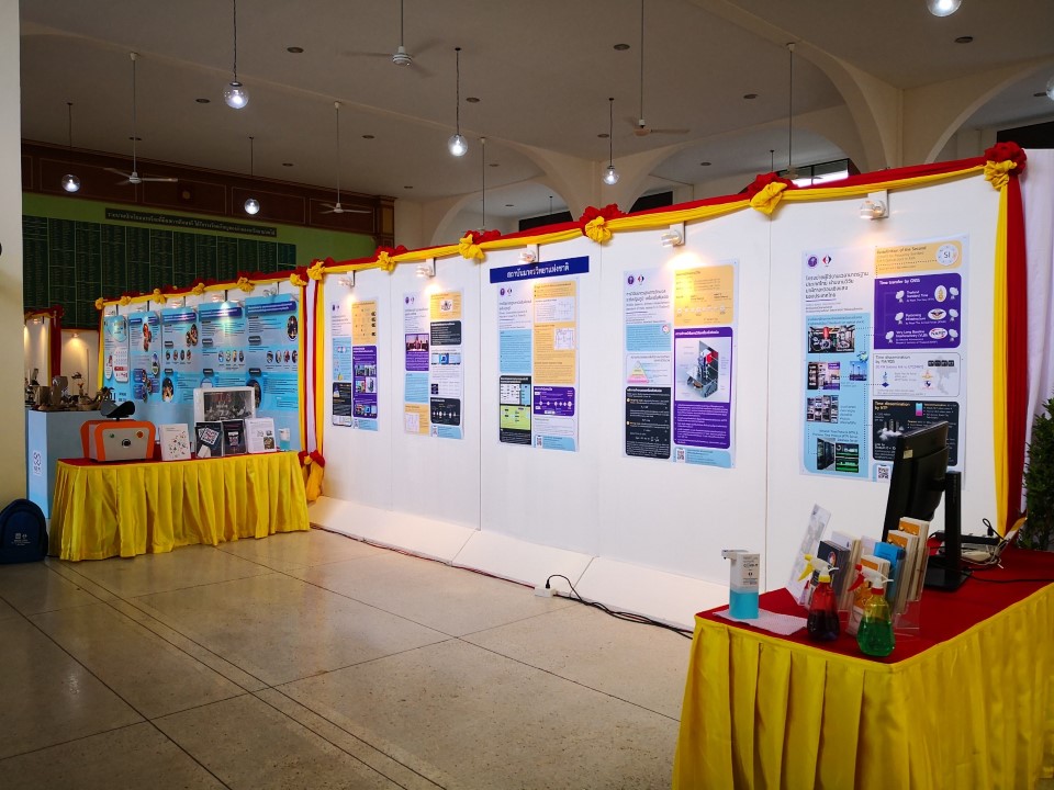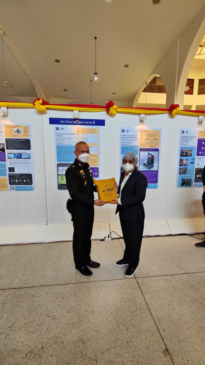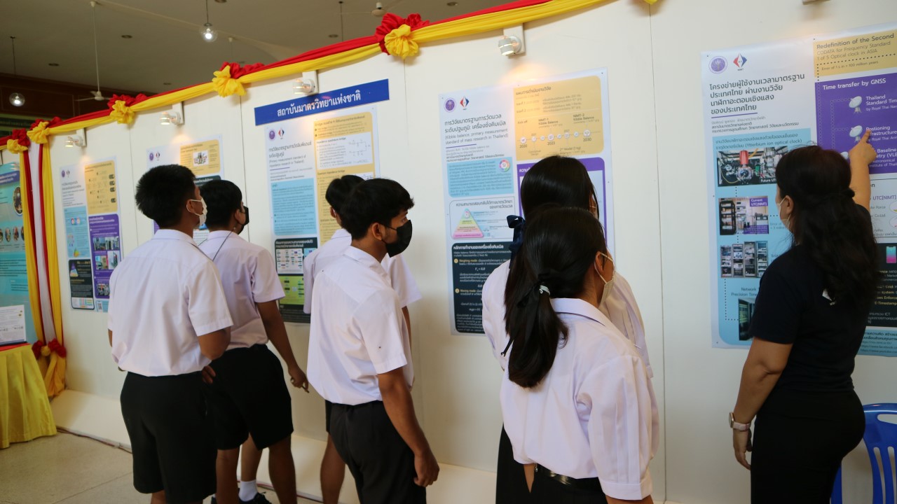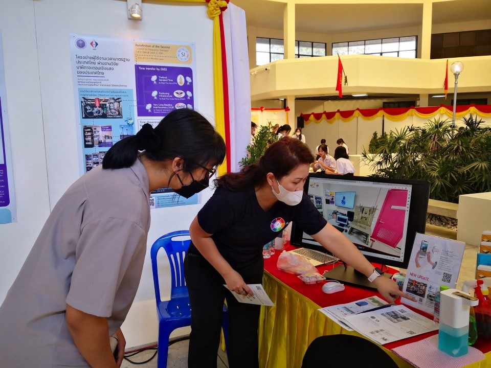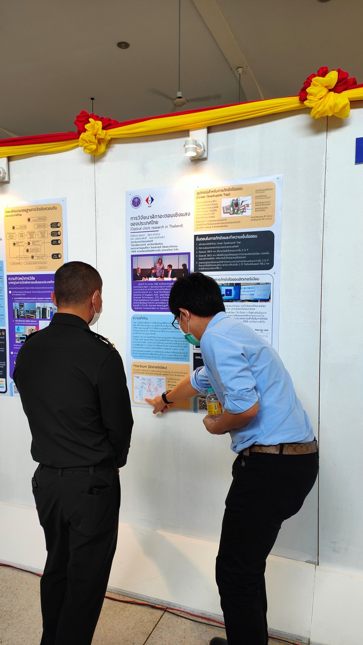 ในการนี้ น.ส.สิวินีย์ สวัสดิ์อารี หัวหน้าฝ่ายมาตรวิทยาไฟฟ้าพร้อมด้วย พนักงาน มว. เข้าร่วมงานดังกล่าว โดยร่วมนำเสนอผลงานทางวิชาการในหัวข้อ “การวิจัยและสร้างมาตรฐานการวัดเชิงควอนตัมของประเทศไทย” โดยการจัดนิทรรศการครั้งนี้ได้รายงานความก้าวหน้าของการวิจัยมาตรฐานการวัดระดับปฐมภูมิ 3 รายการ ได้แก่ นาฬิกาอะตอมเชิงแสงด้วยไอออนเย็นของธาตุอิตเทอร์เบียม (Ytterbium ion optical clock) สะพานไฟฟ้าอิมพิแดนซ์เชิงควอนตัม (quantum impedance bridge) และตราชั่งแบบคิบเบิล (Kibble balance) ซึ่งจะเป็นมาตรฐานการวัดระดับปฐมภูมิของเวลา อิมพิแดนซ์ และมวล ตามลำดับ มาตรฐานการวัดทั้งสามรายการนี้เป็นระบบขนาดใหญ่ที่มีความซับซ้อน เกิดจากการสร้างปรากฏการณ์ธรรมชาติเชิงควอนตัมที่มีลักษณะเฉพาะเจาะจงและคงตัว แล้วนำมาผนวกกับระบบวัดที่มีความไวอย่างยิ่งเพื่อสำแดง หรือถ่ายทอดลักษณะเฉพาะเชิงควอนตัมนั้นมาเป็นสัญญาณที่สามารถนำไปใช้ประโยชน์ทางมาตรวิทยาต่อไป ทั้งนี้เพือเป็นการประชาสัมพันธ์องค์ความรู้เกี่ยวกับการเปลี่ยนแปลงนิยามของ ระบบหน่วยระหว่างประเทศ หรือเอสไอ (International System of Units, SI) ตามนิยามปี 2562 ที่วางอยู่บนค่าคงที่ที่มีค่าแน่นอนจำนวน 7 ตัว รวมไปถึงการสร้างความรู้ ความเข้าใจ บทบาท หน้าที่ ภารกิจ ของสถาบันมาตรวิทยาแห่งชาติ ให้เป็นที่รู้จักในวงกว้าง เพื่อสร้างความรับรู้และสร้างความตระหนักให้สังคมได้รับทราบ และเห็นความสำคัญของงานด้านมาตรวิทยาที่เป็นหนึ่งในองค์ประกอบของงานด้านโครงสร้างพื้นฐานทางคุณภาพของประเทศ ที่มีส่วนสำคัญต่อการพัฒนาทั้งทางด้านเศรษฐกิจ สังคม รวมไปถึงงานด้านความมั่นคงของชาติ ณ โรงเรียนนายร้อยพระจุลจอมเกล้า จ.นครนายก