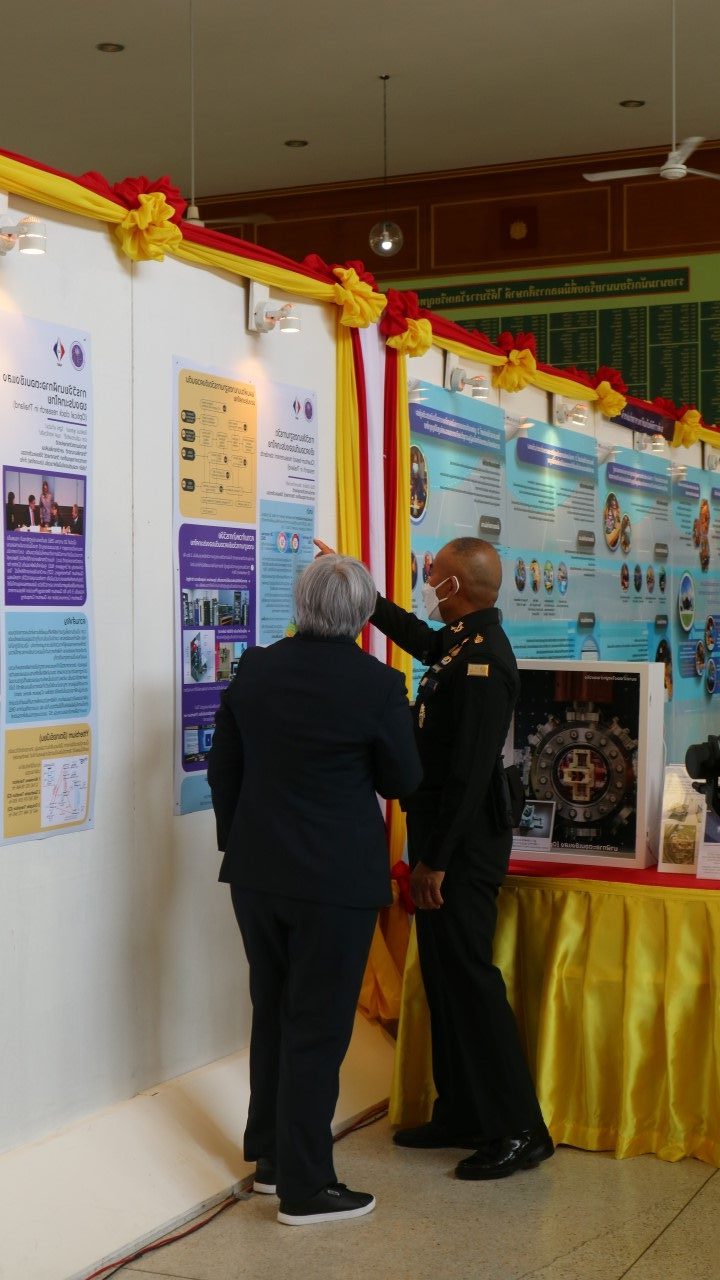 สถาบันมาตรวิทยาแห่งชาติ (มว.) เข้าร่วมจัดนิทรรศการในงาน “วันนิทรรศการวิชาการ โรงเรียนนายร้อยพระจุลจอมเกล้า ครั้งที่ 15 ประจำปี 2565” ที่จัดขึ้นเพื่อเป็นพื้นที่ในการเผยแพร่ผลงานวิจัยและโครงงานวิจัยของอาจารย์และบุคลากรของโรงเรียนนายร้อยพระจุลจอมเกล้า และหน่วยงานที่เกี่ยวข้อง เพื่อให้นิทรรศการวิชาการดังกล่าวมีส่วนส่งเสริม พัฒนา และขยายเครือข่ายความร่วมมือทางวิชาการระหว่างโรงเรียนนายร้อยพระจุลจอมเกล้ากับสถาบันการศึกษา และหน่วยงานต่างๆ ที่ได้ร่วมนำเสนอผลงาน โดยมี พลโทปิยพงศ์ กลิ่นพันธ์ ผู้บัญชาการโรงเรียนนายร้อยพระจุลจอมเกล้า เป็นประธานในพิธีเปิดงาน พร้อมทั้งเยี่ยมชมนิทรรศการของหน่วยงานและสถาบันการศึกษาต่างๆ ซึ่งภายในงานได้จัดให้มีการนำเสนอผลงานวิจัยและโครงงานเป็น 5 ส่วน ได้แก่ 1.โครงการวิจัยของอาจารย์ โรงเรียนนายร้อยพระจุลจอมเกล้า 2. ศูนย์วิจัยสหวิทยาการ เฉลิมพระเกียรติ 5 รอบ พลเอกหญิงสมเด็จพระเทพรัตนราชสุดาฯ สยามบรมราชกุมารี โรงเรียนนายร้อยพระจุลจอมเกล้า 3.โครงการและผลงานวิจัยของสถาบันภายในกระทรวงกลาโหม 4.โครงการและผลงานวิจัยของสถาบันภายนอก และ 5. โครงงานวิจัยของนักเรียนนายร้อยโรงเรียนนายร้อยพระจุลจอมเกล้า