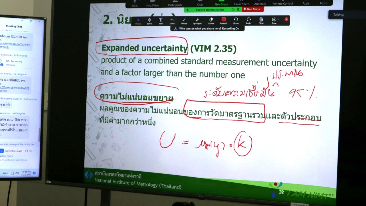 ส่วนฝึกอบรม กลุ่มงานพัฒนาธุรกิจ จัดการอบรมหลักสูตรมาตรวิทยาประจำปีงบประมาณ 2566 ในรูปแบบออนไลน์ หัวข้อ “ ความเข้าใจและการตีความใบรับรองผลการสอบเทียบ” ที่เป็นหลักสูตรที่เหมาะสำหรับผู้ตรวจประเมินระบบคุณภาพ ISO ผู้รับผิดชอบด้านระบบคุณภาพและเครื่องมือวัด และเจ้าหน้าที่ทดสอบและสอบเทียบมาตรฐานเครื่องมือวัด บรรยายโดย ดร.มณฑล หอมกลิ่นเทียน นักมาตรวิทยาชำนาญการพิเศษ รักษาการหัวหน้ากลุ่มงานมาตรฐานปฐมภูมิไฟฟ้า เวลาและความถี่ ฝ่ายมาตรวิทยาไฟฟ้า ทั้งนี้เพื่อให้ผู้เข้าอบรมมีความรู้ความเข้าใจและทราบถึงองค์ประกอบสำคัญในใบรายงานการสอบเทียบ และตระหนักถึงความสำคัญของใบรายงานผลการสอบเทียบเครื่องมือวัด สามารถอธิบายนิยามศัพท์ทางมาตรวิทยาที่ปรากฎในใบรับรองการสอบเทียบได้อย่างถูกต้อง พร้อมทั้งสามารถนำข้อมูลในใบรายงานการสอบเทียบไปใช้ได้อย่างถูกต้อง รวมไปถึงการมีองค์ความรู้ในการเลือกใช้บริการห้องปฏิบัติการสอบเทียบได้อย่างถูกต้องต่อไป ณ ห้องประชุมชั้น 3 อาคารพัฒนามาตรฐานการวัดเพื่อรองรับการพัฒนาระบบราง (มว.) จ.ปทุมธานี