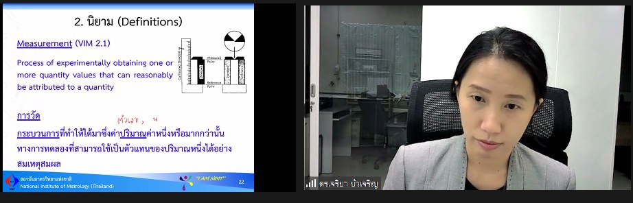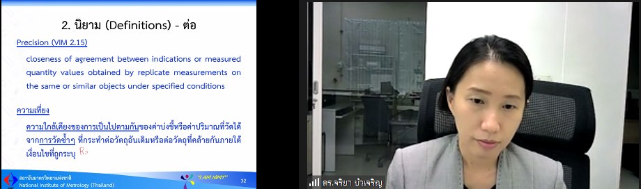 ส่วนฝึกอบรม กลุ่มงานพัฒนาธุรกิจ ฝ่ายนโยบายและยุทธศาสตร์ จัดการอบรมหลักสูตรมาตรวิทยาประจำปีงบประมาณ 2566 ในรูปแบบออนไลน์ หัวข้อ “ การประเมินค่าความไม่แน่นอนของการวัด” ที่เป็นหลักสูตรพื้นฐานที่เหมาะสำหรับผู้เข้ารับการฝึกอบรมการสอบเทียบทุกสาขาการวัด บรรยายโดย ดร.จริยา บัวเจริญ หัวหน้าฝ่ายมาตรวิทยามิติ ทั้งนี้เพื่อให้ผู้เข้าอบรมมีความรู้ความเข้าใจแนวทางการประเมินความไม่แน่นอนของการวัดตาม Guide to the expression of uncertainty in measurement (GUM) และสามารถนำความรู้ไปประยุกต์ใช้ในการรายงานผลการทดสอบ หรือผลการสอบเทียบของห้องปฏิบัติการ รวมไปถึงมีความเข้าใจในการรายงานผลความไม่แน่นอนที่ระบุมากับใบรับรองการสอบเทียบ และสามารถนำไปใช้ได้อย่างถูกต้อง โดยผู้เข้าอบรมจะได้เรียนรู้เนื้อหา อาทิ นิยาม แนวคิดพื้นฐาน การประเมินความไม่แน่นอนตามมาตรฐาน ตามแนวทางของ GUM รวมไปถึงการทำแบบฝึกหัด เป็นต้น เพื่อให้สามารถนำความรู้ที่ได้จากการอบรมไปใช้ในการปฏิบัติงานได้จริง ณ สถาบันมาตรวิทยาแห่งชาติ จ.ปทุมธานี