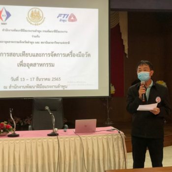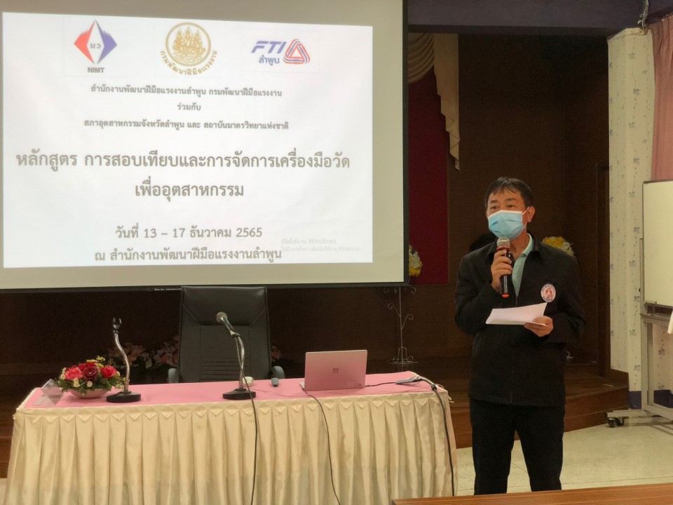 นางอัจฉรา เจริญสุข ผู้อำนวยการ พร้อมด้วย เจ้าหน้าที่ สถาบันมาตรวิทยาแห่งชาติ (มว.) เข้าร่วมเป็นวิทยากรในการจัดการฝึกอบรม หลักสูตรการสอบเทียบและจัดการเครื่องมือวัดเพื่ออุตสาหกรรม (Calibration and management of measuring instrument for industrial) ที่จัดขึ้นโดยความร่วมมือระหว่าง มว.และ สำนักงานพัฒนาฝีมือแรงงานลำพูน ระหว่างวันที่ 13 – 17 ธันวาคม 2565 ณ สำนักงานพัฒนาฝีมือแรงงานลำพูน จ. ลำพูน