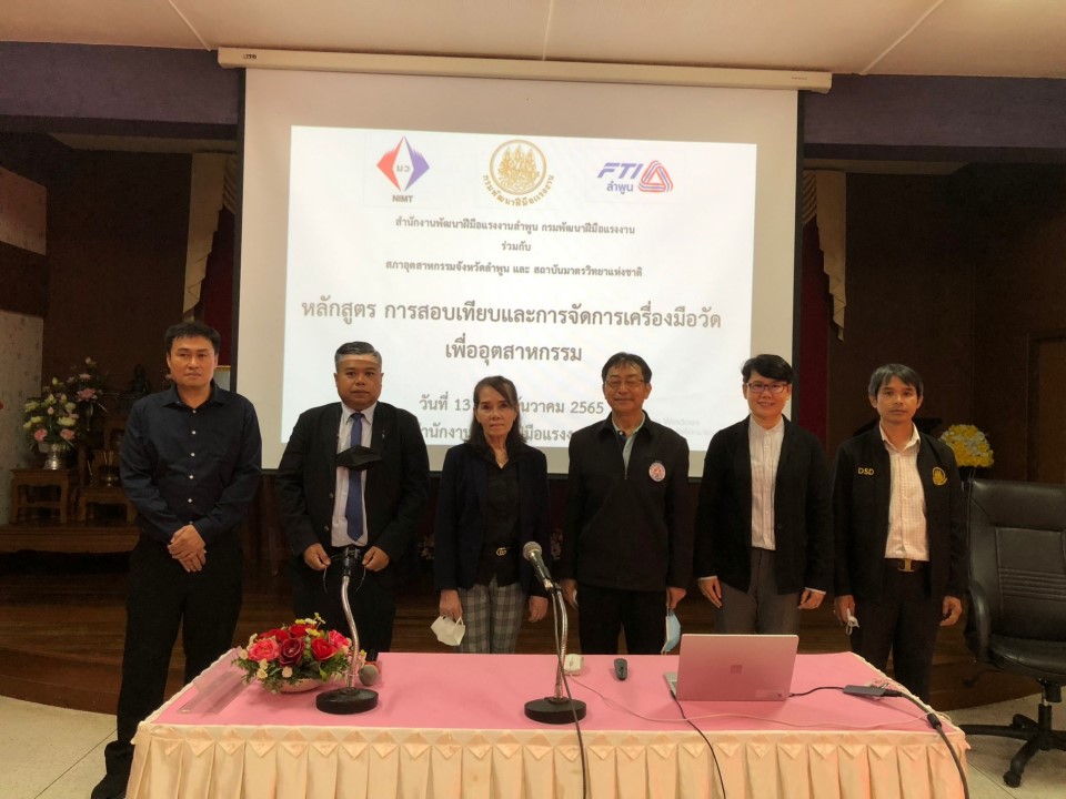 ในการนี้ มว. และสำนักงานพัฒนาฝีมือแรงงานลำพูน ได้ร่วมกันจัดทำหลักสูตรการสอบเทียบและจัดการเครื่องมือวัดเพื่ออุตสาหกรรมขึ้น สำหรับใช้ในการฝึกอบรมให้แก่ฝีมือแรงงานสำหรับภาคอุตสาหกรรมในจังหวัดลำพูน และผู้ที่สนใจ เพื่อเป็นการเพิ่มความรู้และทักษะด้านมาตรวิทยา และผู้ที่ผ่านการอบรมจะได้รับวุฒิบัตรจากสถาบันมาตรวิทยาแห่งชาติ โดยกิจกรรมดังกล่าวจัดขึ้น เพื่อการพัฒนาศักยภาพด้านการสอบเทียบเครื่องมือวัดและสร้างความรู้ความเข้าใจเกี่ยวกับระบบคุณภาพต่างๆ ให้กับกลุ่มฝีมือแรงงานฯ เพื่อจะได้นำงานด้านมาตรวิทยาไปปรับใช้และช่วยเพิ่มประสิทธิภาพในการพัฒนาภาคอุตสาหกรรม ประกอบไปด้วยการบรรยายในหลากหลายหัวข้อ ได้แก่