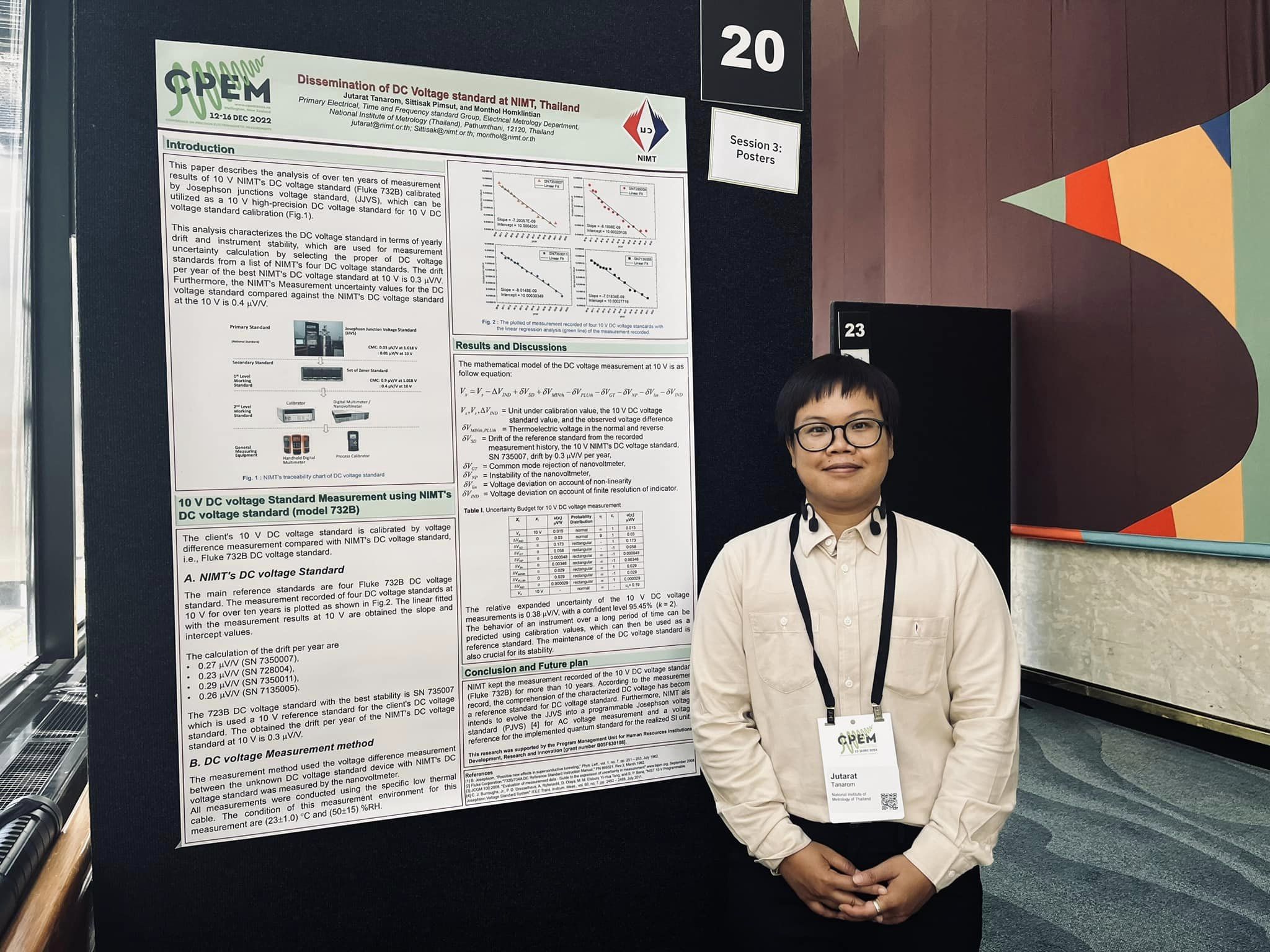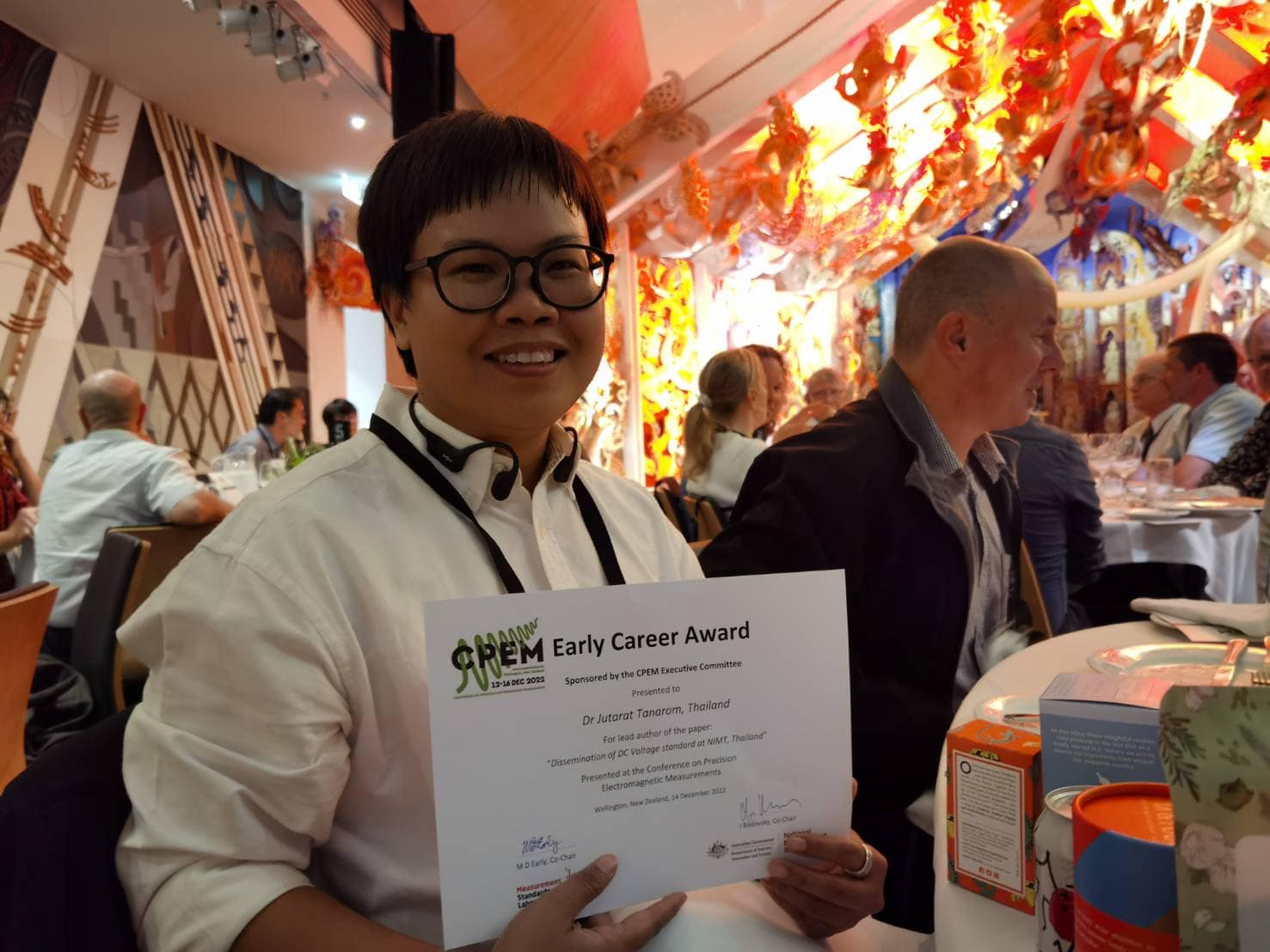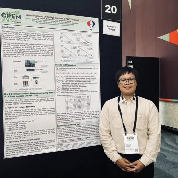 - ดร.จุฑารัตน์ ทานะรมณ์ นักมาตรวิทยาชำนาญการ ฝ่ายมาตรวิทยาไฟฟ้า นำเสนองานวิจัยหัวข้อ“Dissemination of DC Voltage standard at NIMT, Thailand” พร้อมกันนี้ ดร.จุฑารัตน์ ทานะรมณ์ ยังได้รับรางวัล Early Career Award จากหัวข้องานวิจัยดังกล่าวด้วย ซึ่งงานวิจัยที่ได้นำเสนอในงานนี้จะถูกนำมาพัฒนาและต่อยอดเพื่อใช้ในการพัฒนามาตรฐานการวัดของชาติให้ดียิ่งขึ้นต่อไป