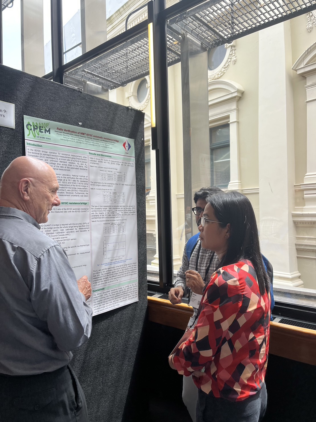 - คุณเนตรนพิศ คุ้มทุกทิศ นักมาตรวิทยาชำนาญการพิเศษ รักษาการหัวหน้ากลุ่มงานไฟฟ้ากระแสตรงและความถี่ต่ำความถี่สูงและสนามแม่เหล็ก ฝ่ายมาตรวิทยาไฟฟ้า นำเสนองานวิจัย หัวข้อ “Ratio Verification of NIMT6010C automatic resistance bridge”