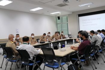 ดร.จรัญ ยะฝา ผู้ช่วยผู้อำนวยการ มว. พร้อมด้วย ดร.สิวินีย์ สวัสดิ์อารี หัวหน้าฝ่ายมาตรวิทยาไฟฟ้า และนักมาตรวิทยา ฝ่ายมาตรวิทยาไฟฟ้า ให้การต้อนรับ พล.ร.ต.คมสัน กลิ่นสุคนธ์ รองเจ้ากรมอุทกศาสตร์ พร้อมด้วยข้าราชการกรมอุทกศาสตร์ กองทัพเรือ เข้าเยี่ยมชมห้องปฏิบัติการเวลาและความถี่ ฝ่ายมาตรวิทยาไฟฟ้า สถาบันมาตรวิทยาแห่งชาติ ตามที่กรมอุทกศาสตร์ ได้ทำข้อตกลงความร่วมมือการพัฒนามาตรฐานเวลากับสถาบันมาตรวิทยาแห่งชาติ เพื่อให้เกิดการพัฒนาและยกระดับความรู้ความสามารถ ทั้งด้านวิชาการ และด้านการปฏิบัติเกี่ยวกับระบบการถ่ายทอดความถูกต้องของการวัดเวลา การรักษาเวลา และการให้บริการเทียบเวลาแก่ประชาชน การเยี่ยมชมห้องปฏิบัติการดังกล่าว จัดขึ้น ณ อาคารพัฒนาระบบราง และอาคารผดุงมาตร (มว.) คลองห้า จังหวัดปทุมธานี