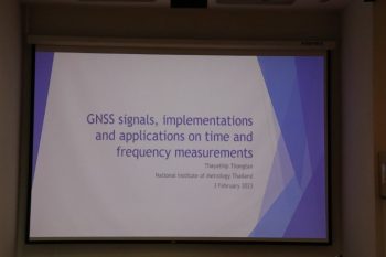 ดร.สิวินีย์ สวัสดิ์อารี หัวหน้าฝ่ายมาตรวิทยาไฟฟ้า สถาบันมาตรวิทยาแห่งชาติ (มว.) ประธานเปิดงานสัมมนาเชิงปฏิบัติการ เรื่อง “GNSS signals, implementations and applications” ต่อด้วยการบรรยายจาก ดร.ทยาทิพย์ ทองตัน นักมาตรวิทยา มว. เรื่อง GNSS for time and frequency distributions” การบรรยายเรื่อง “GNSS Research works on Interferences and Scintillations” โดย ศ.ดร.พรชัย ทรัพย์นิธิ จากสถาบันเทคโนโลยีพระจอมเกล้าเจ้าคุณทหารลาดกระบัง การบรรยายเรื่อง “GNSS signal Interferences and authentications and low-cost receiver or high precision positioning determinations” โดย Project Associate Professor Dinesh Manandhar, PhD, University of Tokyo และในช่วงบ่ายเป็นการเสวนาการใช้งานสัญญาณ GNSS ในเรื่องการคมนาคมทางบก โดย ดร.ปาษาณ กุลวานิช จากกรมวิทยาศาสตร์บริการ ในเรื่องการบิน โดยคุณณัฐพงศ์ เศียรสวัสดิ์ จากบริษัทวิทยุการบิน ในเรื่อง UAV โดย รศ.ดร.ไพศาล สันติธรรมนนท์ จากจุฬาลงกรณ์มหาวิทยาลัย ในเรื่อง UMV โดยคุณภัคชนม์ หุ่นสุวรรณ์ จากบริษัท Rovula (Thailand) จำกัด และในเรื่อง Urban management โดย ผศ.ดร.กรวิก ตนักษรานนท์ จากจุฬาลงกรณ์มหาวิทยาลัย ต่อด้วยเสวนานโยบายวิทยาศาสตร์ เทคโนโลยีแนะนวัตกรรม อวกาศ การจัดสรรสัญญาณการกระจายความถี่ และการป้องกันสัญญาณย่าน GNSS ในด้านวิทยาศาสตร์ เทคโนโลยีและนวัตกรรม ได้รับเกียรติจาก ดร.กาญจนา วานิชกร รองผู้อำนวยการสำนักงานสภานโยบายการอุดมศึกษา วิทยาศาสตร์ วิจัยและนวัตกรรมแห่งชาติ (สอวช.) ในด้านอวกาศและเศรษฐกิจของไทย ได้รับเกียรติจาก ดร.ดำรงค์ฤทธิ์ เนียมหมวด รองผู้อำนวยการสำนักงานพัฒนาเทคโนโลยีอวกาศและภูมิสารสนเทศ (GISTDA) และในด้านการจัดสรร กระจาย และการป้องกันสัญญาณความถี่ ได้รับเกียรติจาก ดร.ถิรพิรุฬห์ ทองคำวิฑูรย์ ผู้อำนวยการส่วนวิศวกรรมคลื่นความถี่ สำนักบริหารคลื่นความถี่ สำนักงาน กสทช. ซึ่งการสัมมนาเชิงปฏิบัติการในครั้งนี้ได้รับความสนใจทั้งจากภาครัฐและภาคเอกชนเข้าร่วมเป็นจำนวนมาก รวมทั้งยังมีการแลกเปลี่ยนประสบการณ์ในการใช้สัญญาณ GNSS การประยุกต์ใช้งาน GNSS ในด้านต่างๆ รวมไปถึงนโยบายและแนวทางการดำเนินงานในด้านวิทยาศาสตร์ เทคโนโลยี การวิจัย และการพัฒนาอุตสาหกรรมที่เกี่ยวเนื่องกับการใช้งานข้อมูลและอุปกรณ์ทางอวกาศ การจัดสรรช่องสัญญาณสำหรับความถี่ในย่านการใช้งานของสัญญาณ GNSS และการนโยบายป้องกันการรบกวนและบ่งชี้ความแท้จริงของสัญญาณเพื่อระบุตำแหน่ง นำทางและบอกเวลาที่ถูกต้อง แม่นยำ ตลอดจนการรับสัญญาณ โดยเฉพาะการรับสัญญาณในเวลาจริง การสัมมนาครั้งนี้ได้ยกหัวข้อที่เกี่ยวเนื่องกับการใช้งานและบริการภาคสาธารณะสำหรับวิพากษ์ และแลกเปลี่ยนประสบการณ์ในการใช้สัญญาณ GNSS ได้ทราบแนวทางในการจัดการและป้องกันสัญญาณรบกว