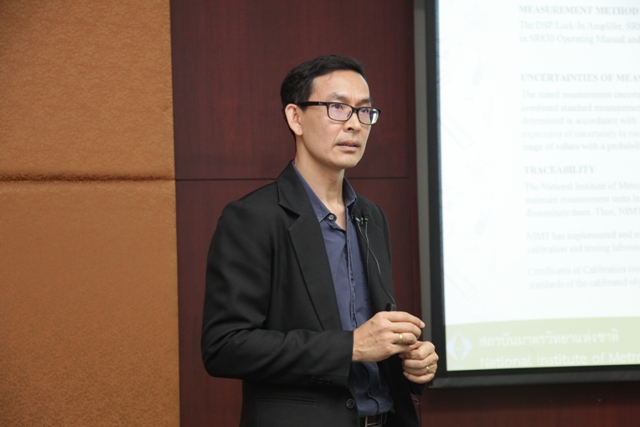 ส่วนฝึกอบรม ฝ่ายนโยบายและยุทธศาสตร์ จัดอบรมหลักสูตร “ความเข้าใจและการตีความใบรับรองผลการสอบเทียบ” บรรยายให้ความรู้แก่ผู้เข้ารับการอบรมทั้งจากภาครัฐและเอกชน โดย ดร.มณฑล หอมกลิ่นเทียน นักมาตรวิทยา ปฏิบัติการ ห้องปฏิบัติการค่าความจุไฟฟ้า ฝ่ายมาตรวิทยาไฟฟ้า โดยมีวัตถุประสงค์เพื่อให้ผู้เข้าอบรมได้ตระหนักถึงความสำคัญของใบรายงานผลการสอบเทียบเครื่องมือวัด สามารถอธิบายนิยามศัพท์ทางมาตรวิทยาที่ปรากฎในใบรายงานผลการสอบเทียบได้อย่างถูกต้อง เพื่อให้ทราบถึงองค์ประกอบสำคัญในใบรายงานผลการสอบเทียบ และเพื่อเป็นแนวทางในการเลือกใช้ห้องปฏิบัติการสอบเทียบได้อย่างถูกต้อง ณ อาคารสำนักงานกลาง มว. จ.ปทุมธานี
