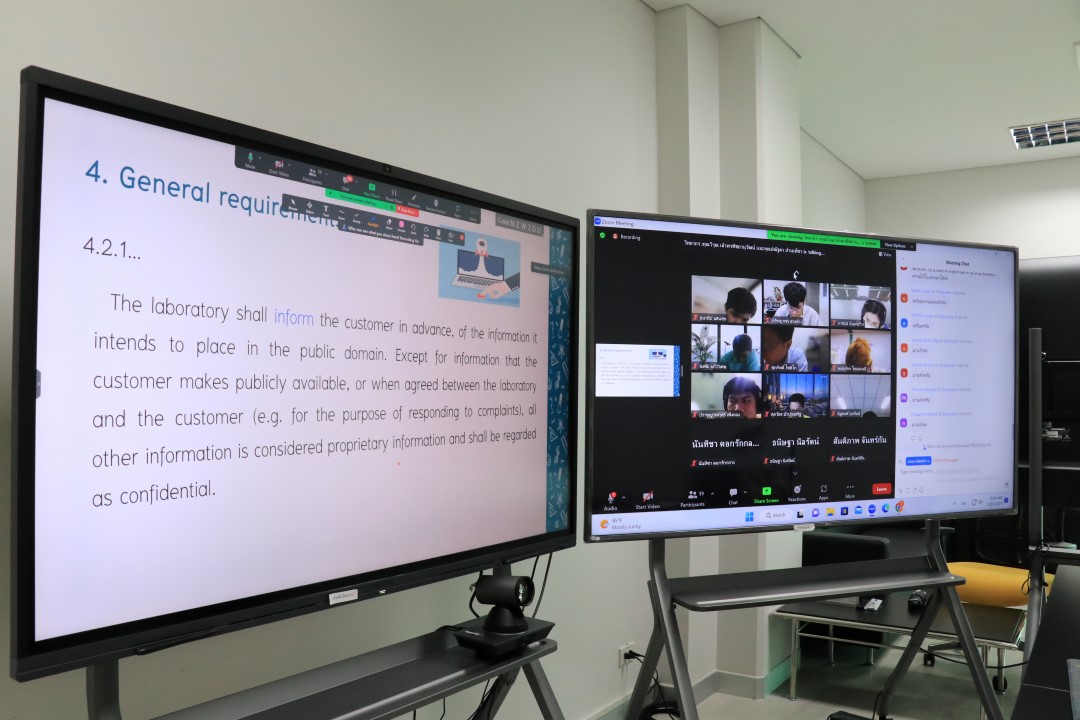 ส่วนฝึกอบรม กลุ่มงานพัฒนาธุรกิจ ฝ่ายนโยบายและยุทธศาสตร์ จัดการอบรมหลักสูตรมาตรวิทยาประจำปีงบประมาณ 2566 ในรูปแบบออนไลน์ ในหัวข้อ “ ระบบคุณภาพห้องปฏิบัติการตาม ISO/IEC 17025:2017(E) รุ่น 3 : ISO/IEC 17025:2017(E) General requirements for the competence of testing and calibration laboratories” ณ ห้องประชุมชั้น 3 อาคารพัฒนามาตรฐานการวัดเพื่อรองรับการพัฒนาระบบราง (มว.) จ.ปทุมธานี เพื่อให้ความรู้แก่ผู้เข้าอบรมทั้งจากภาครัฐ เอกชน และอุตสาหกรรม ที่สนใจต้องการนำความรู้ที่ได้ไปใช้ในการขอการรับรองระบบคุณภาพห้องปฏิบัติการตาม ISO/IEC 17025 บรรยายโดยวิทยากร นายวิรุณ เล้าพรพิชยานุวัฒน์ หัวหน้า ฝ่ายมาตรวิทยาเชิงกล และ น.ส.ปณัฐดา ปานเพ็ชร นักมาตรวิทยาชำนาญการพิเศษ กลุ่มงานมาตรฐานปฐมภูมิอุณหภูมิ ฝ่ายมาตรวิทยาอุณหภูมิและแสง ทั้งนี้เพื่อให้ผู้เข้าอบรมมีความรู้ความเข้าใจความหมายและข้อกำหนดของระบบคุณภาพห้องปฏิบัติการ ISO/IEC 17025 และเป็นการเตรียมความพร้อมสำหรับการนำระบบคุณภาพห้องปฏิบัติการ ISO/IEC 17025 ไปปฏิบัติงานจริง ซึ่งหลักสูตรดังกล่าวยังคงได้รับการตอบรับเป็นอย่างดีจากลูกค้าอบรมทั้งในกลุ่มภาคอุตสาหกรรม ราชการ และภาคการศึกษาจากทั่วประเทศ โดยในปีงบประมาณ 2566 นี้ จัดขึ้นเป็นครั้งที่ 3 แล้ว โดยท่านที่สนใจยังสามารถลงทะเบียนหลักสูตรนี้และหลักสูตรอื่นๆ ได้ที่หน้าเว็บไซต์สถาบันมาตรวิทยาแห่งชาติ