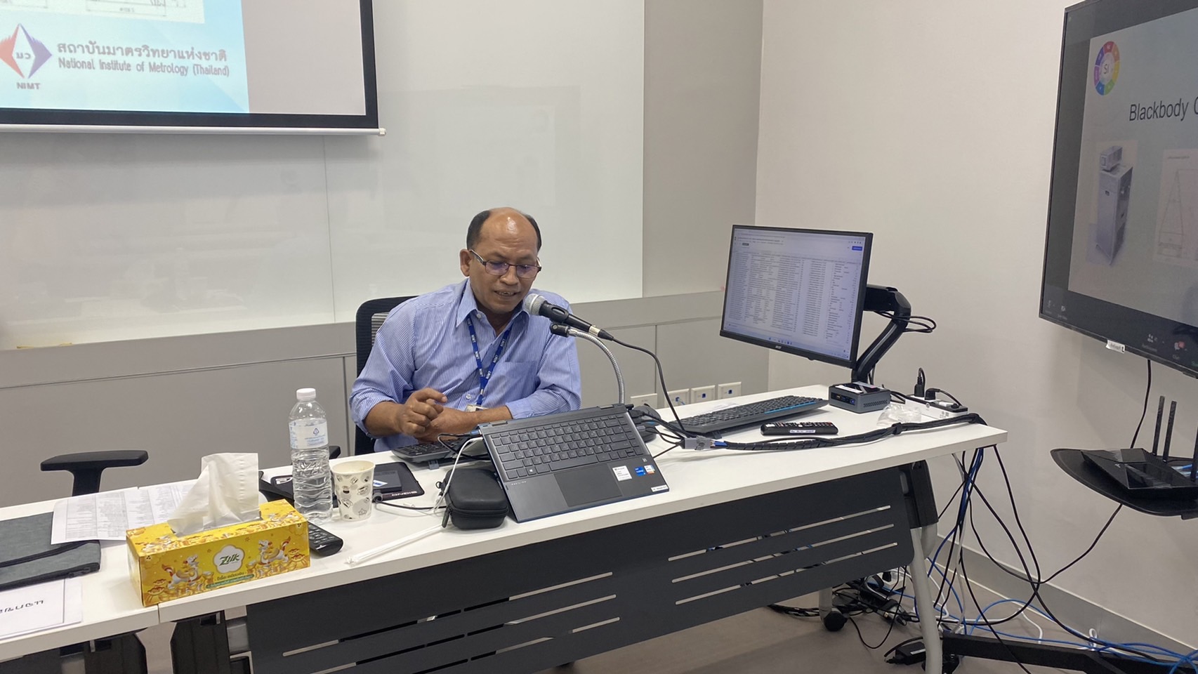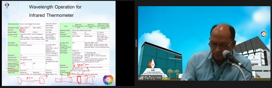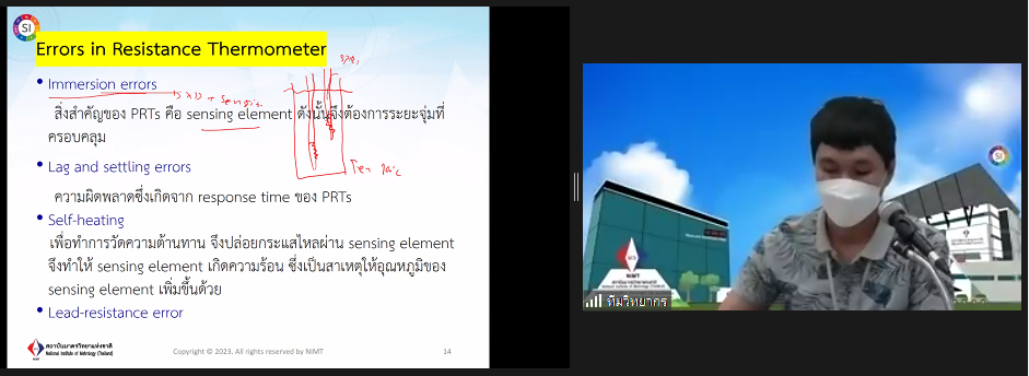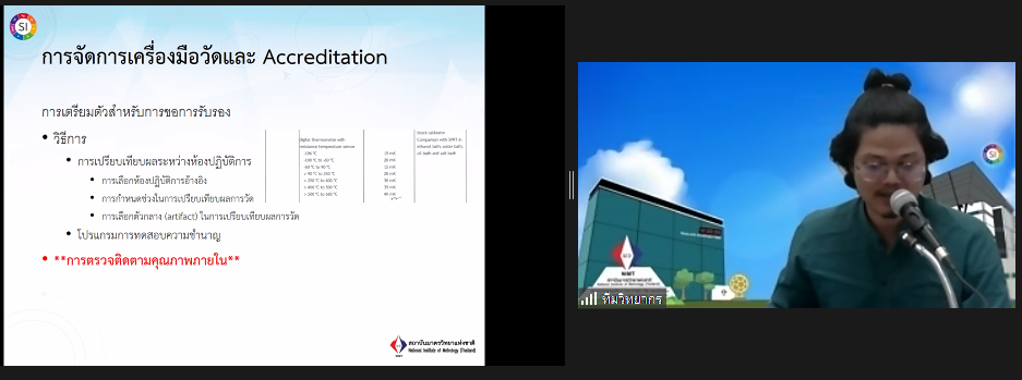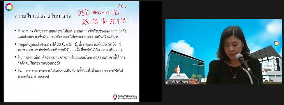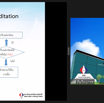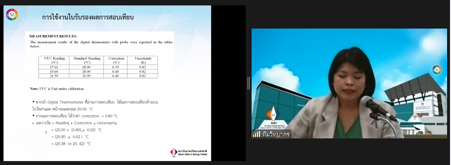 ส่วนฝึกอบรม กลุ่มงานพัฒนาธุรกิจ ฝ่ายนโยบายและยุทธศาสตร์ จัดการอบรมหลักสูตรมาตรวิทยาประจำปีงบประมาณ 2566 ในรูปแบบออนไลน์หัวข้อ “ พื้นฐานการสอบเทียบเครื่องมือวัดทางอุณหภูมิ : Basic of temperature measurement and calibration” ซึ่งเป็นหลักสูตรที่เหมาะสำหรับวิศวกร นักปฏิบัติการ นักวิชาการ และผู้บริหาร ที่สนใจเรียน หรือทบทวนความรู้ ด้านการวัดและการสอบเทียบเครื่องมือวัดทางอุณหภูมิ ตั้งแต่ -200°C ถึง 2,000° C เนื้อหานี้จะครอบคลุมมาตรฐานอุณหภูมิหลักการ วิธีการวัด การสอบเทียบและการสอบย้อนกลับได้ของผลการวัด สำหรับเครื่องมือวัดอุณหภูมิทั้งแบบสัมผัสและไม่สัมผัส ประเภท อาร์ทีดี เทอร์โมคัปเปิล ไพโรมิเตอร์ ดิจิทัลเทอร์โมมิเตอร์ และแหล่งกำเนิดอุณหภูมิ ที่มีความสำคัญต่อการวัดและการสอบเทียบทางอุณหภูมิ โดยเนื้อหาในภาคทฤษฎีจะอธิบายถึง สิ่งสำคัญสำหรับการเตรียมขอการรับรองห้องปฏิบัติการสอบเทียบทางอุณหภูมิ และในช่วงการสาธิตจะแสดงให้เห็นภาพการสอบเทียบจริง ของเครื่องมือวัดประเภท IPRT, TC, Temperature sources และ DTM เพื่อให้ผู้เข้ารับการอบรมทั้งจากภาครัฐ เอกชน และอุตสาหกรรม มีความเข้าใจเรื่องมาตรวิทยา หลักการวัดอุณหภูมิ เทคนิคการวัดและเครื่องมือวัดอุณหภูมิ และเข้าใจกระบวนการสอบเทียบและการหาค่าความไม่แน่นอนทางการวัดอุณหภูมิเบื้องต้น พร้อมทั้งหลักการจัดการเครื่องมือวัดทางอุณหภูมิและการทวนสอบเครื่องมือวัดเข้าใจการเตรียมความพร้อมเพื่อขอการรับรองห้องปฏิบัติการ ISO/IEC 17025 และการเปรียบเทียบผลการวัดสาขาอุณหภูมิ บรรยายโดยทีมวิทยากรจากฝ่ายมาตรวิทยาอุณหภูมิและแสง ได้แก่ นางธสร สิงหะเนติ นายพิเชษ วงษ์นุช ดร.อ้อยใจ อ่องหร่าย นายพงศ์เทพ ภู่อุณฑะโร นายอมรเทพ ลี้เกรียงไกร และนางสาวพจนารถ พิมน้อม ณ ห้องประชุมชั้น 3 อาคารพัฒนามาตรฐานการวัดเพื่อรองรับการพัฒนาระบบราง (มว.) จ.ปทุมธานี
