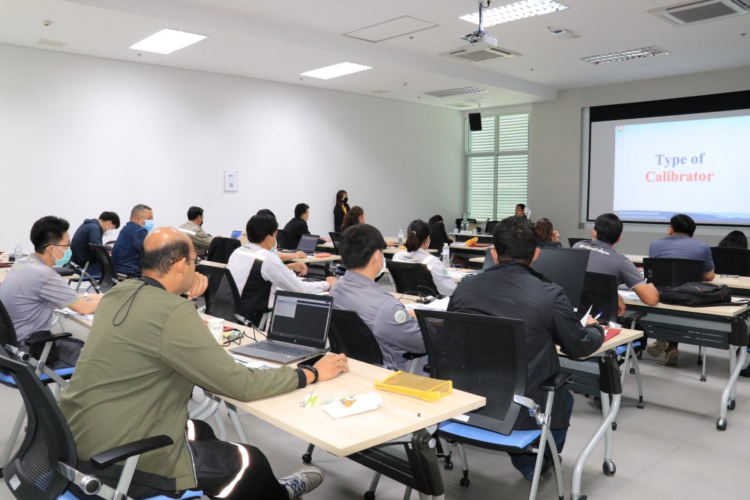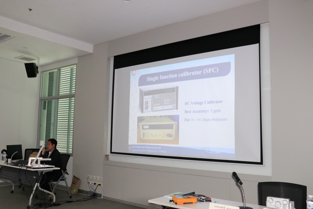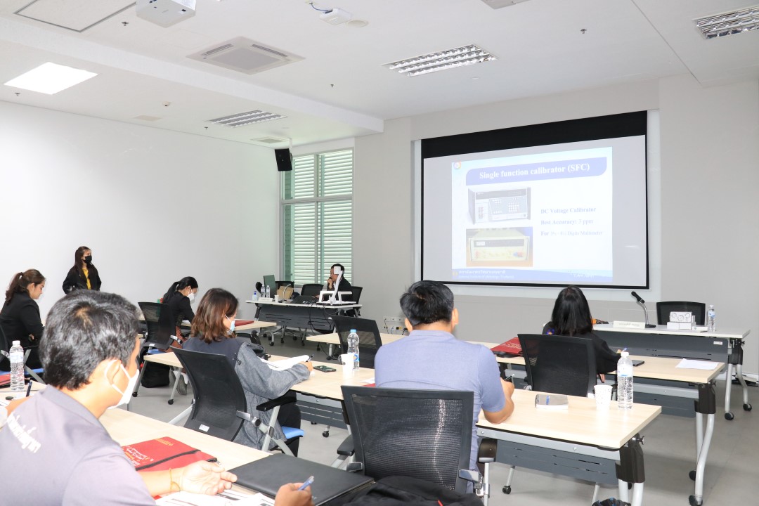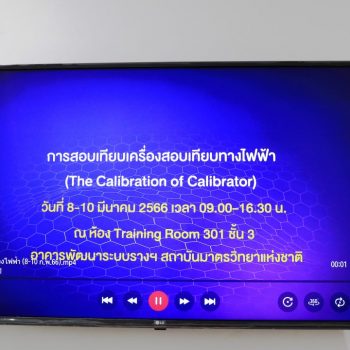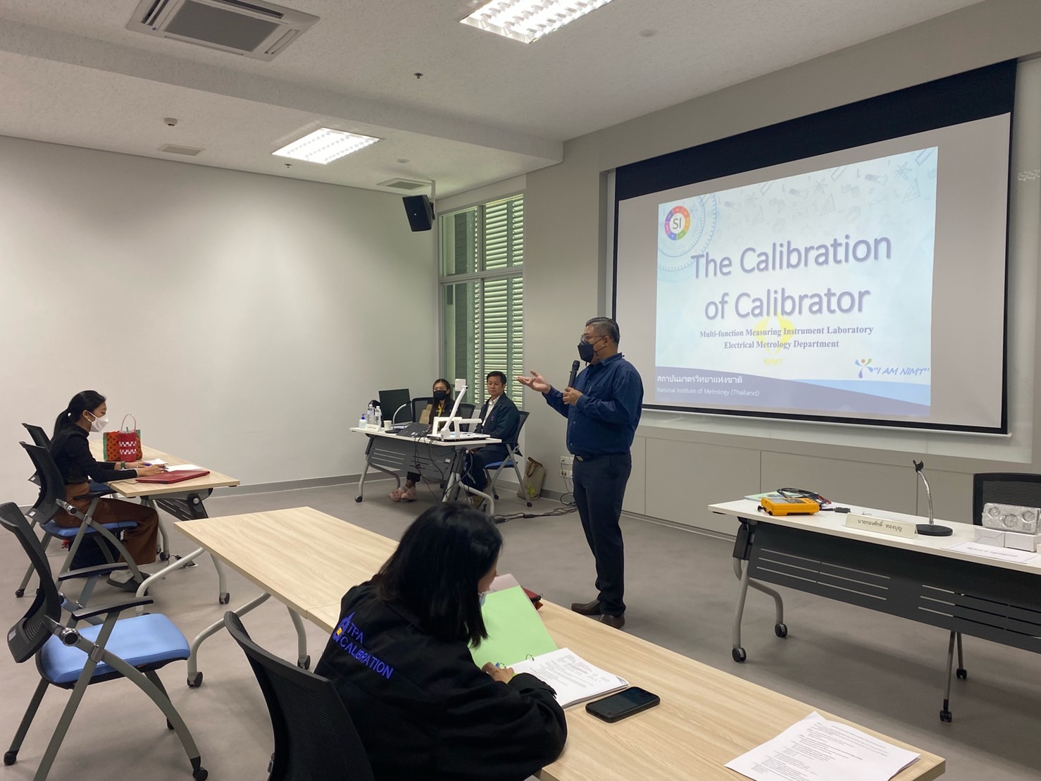 ส่วนฝึกอบรม กลุ่มงานพัฒนาธุรกิจ ฝ่ายนโยบายและยุทธศาสตร์ จัดการอบรมหลักสูตรมาตรวิทยาประจำปีงบประมาณ 2566 ในหัวข้อ “ การสอบเทียบเครื่องสอบเทียบทางไฟฟ้า : The Calibration of Calibrator ” ซึ่งเป็นหลักสูตรสำหรับหน่วยงานที่มีเครื่องมือ AC-DC Voltage Standard, Resistance Standard, AC-DC Current Standard, Capacitance Standard,Frequency Standard และหรือ 8-1/2 digit Digital Multimeter เพื่อให้ผู้เข้ารับการอบรมทั้งจากภาครัฐ เอกชน และอุตสาหกรรม มีความสามารถในการสอบเทียบ Calibrator โดยวิธีการเปรียบเทียบโดยตรงกับ 8-1/2 digit Digital Multimeter ทุกฟังก์ชันได้ และสามารถสอบเทียบ Calibrator โดยวิธีการเปรียบเทียบโดยตรงกับมาตรฐานที่มีค่าความถูกต้องที่สูงกว่าในแต่ละฟังก์ชันได้ ตลอดจนรู้เทคนิคการวัด และผลกระทบต่อการวัด รวมไปถึงประเมินค่าความไม่แน่นอนของการวัดและเขียนขั้นตอนการสอบเทียบ (Calibration Procedure) ได้อย่างถูกต้อง พร้อมทั้งสามารถอ่านใบรายงานผลการสอบเทียบได้ บรรยายโดย นายอดิเทพ จ่างอ่อน (วิทยากร) นักมาตรวิทยาชำนาญการ และ นายกองศักดิ์ ทองบุญ (ผู้ช่วยวิทยากร) นักมาตรวิทยาชำนาญการ กลุ่มงานไฟฟ้ากำลังและเครื่องมือวัดไฟฟ้าความถูกต้องสูง ฝ่ายมาตรวิทยาไฟฟ้า โดยผู้เข้ารับการอบรมจะได้เรียนรู้เนื้อหาทั้งภาคทฤษฎี และการฝึกภาคปฏิบัติเกี่ยวกับ การสอบเทียบ Process Calibrator และการสอบเทียบ Multi-product Calibrator พร้อมทั้งการตอบข้อซัก-ถาม เพื่อให้ผู้เข้าอบรมสามารถนำความรู้ที่ได้ไปประยุกต์ใช้ในการปฏิบัติงานได้จริง ณ ห้องประชุมชั้น 3 อาคารพัฒนามาตรฐานการวัดเพื่อรองรับการพัฒนาระบบราง (มว.) และอาคารผดุงมาตร จ.ปทุมธานี