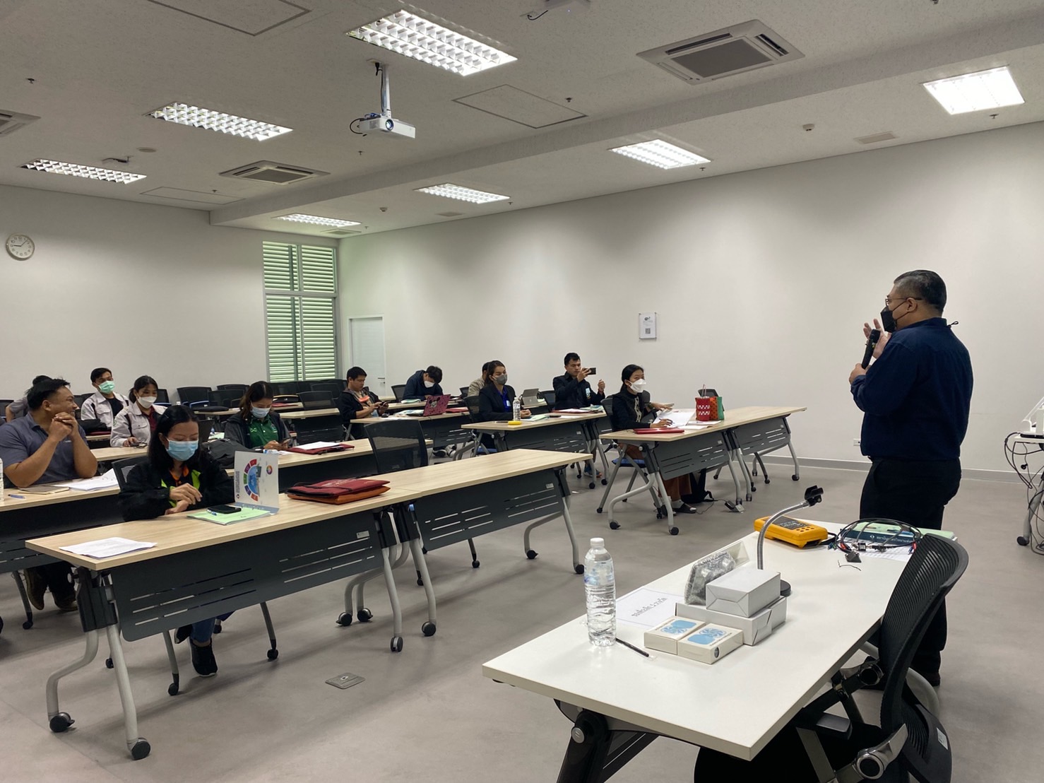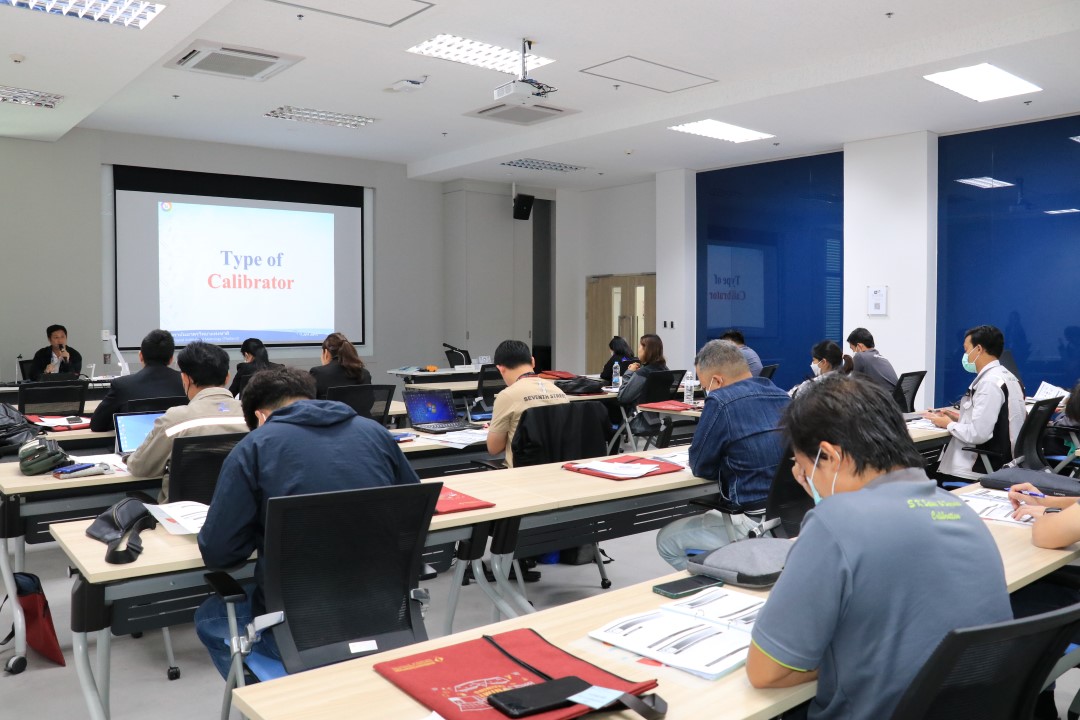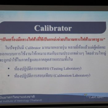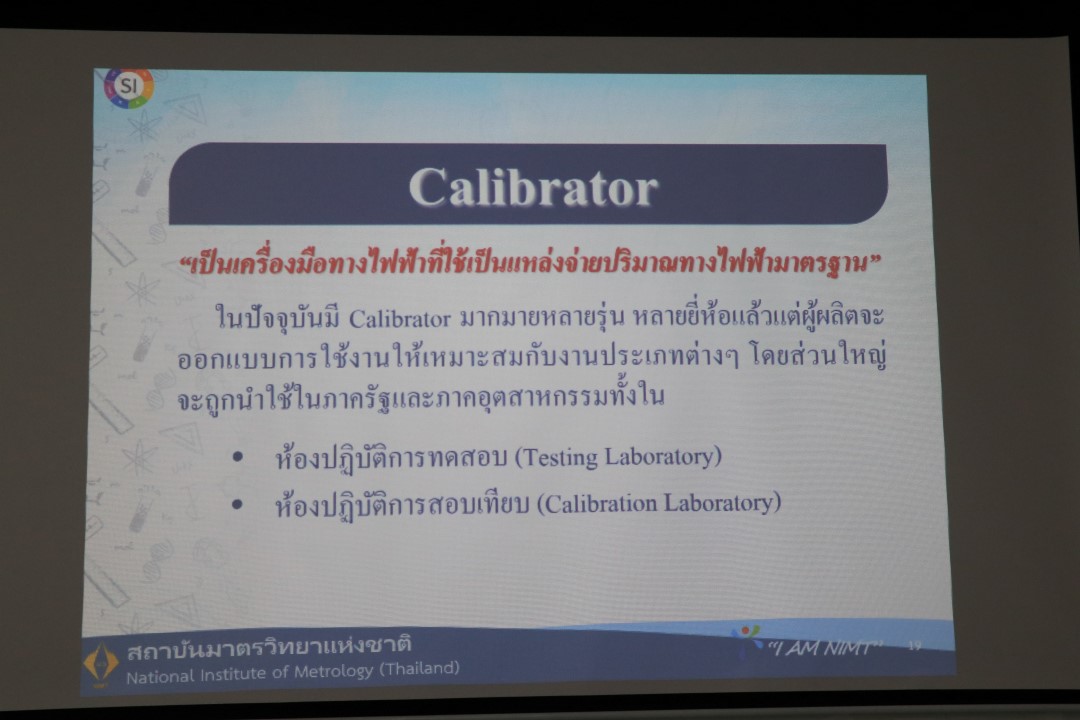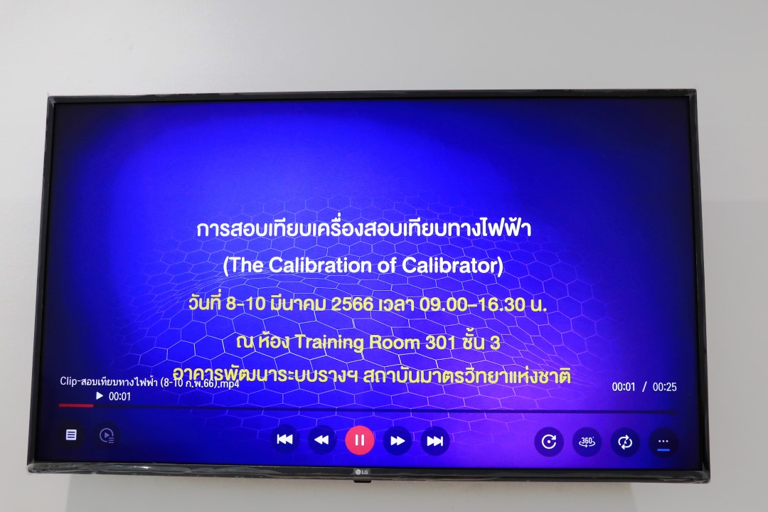 ส่วนฝึกอบรม กลุ่มงานพัฒนาธุรกิจ ฝ่ายนโยบายและยุทธศาสตร์ จัดการอบรมหลักสูตรมาตรวิทยาประจำปีงบประมาณ 2566 ในหัวข้อ “ การสอบเทียบเครื่องสอบเทียบทางไฟฟ้า : The Calibration of Calibrator ” ซึ่งเป็นหลักสูตรสำหรับหน่วยงานที่มีเครื่องมือ AC-DC Voltage Standard, Resistance Standard, AC-DC Current Standard, Capacitance Standard,Frequency Standard และหรือ 8-1/2 digit Digital Multimeter เพื่อให้ผู้เข้ารับการอบรมทั้งจากภาครัฐ เอกชน และอุตสาหกรรม มีความสามารถในการสอบเทียบ Calibrator โดยวิธีการเปรียบเทียบโดยตรงกับ 8-1/2 digit Digital Multimeter ทุกฟังก์ชันได้ และสามารถสอบเทียบ Calibrator โดยวิธีการเปรียบเทียบโดยตรงกับมาตรฐานที่มีค่าความถูกต้องที่สูงกว่าในแต่ละฟังก์ชันได้ ตลอดจนรู้เทคนิคการวัด และผลกระทบต่อการวัด รวมไปถึงประเมินค่าความไม่แน่นอนของการวัดและเขียนขั้นตอนการสอบเทียบ (Calibration Procedure) ได้อย่างถูกต้อง พร้อมทั้งสามารถอ่านใบรายงานผลการสอบเทียบได้ บรรยายโดย นายอดิเทพ จ่างอ่อน (วิทยากร) นักมาตรวิทยาชำนาญการ และ นายกองศักดิ์ ทองบุญ (ผู้ช่วยวิทยากร) นักมาตรวิทยาชำนาญการ กลุ่มงานไฟฟ้ากำลังและเครื่องมือวัดไฟฟ้าความถูกต้องสูง ฝ่ายมาตรวิทยาไฟฟ้า โดยผู้เข้ารับการอบรมจะได้เรียนรู้เนื้อหาทั้งภาคทฤษฎี และการฝึกภาคปฏิบัติเกี่ยวกับ การสอบเทียบ Process Calibrator และการสอบเทียบ Multi-product Calibrator พร้อมทั้งการตอบข้อซัก-ถาม เพื่อให้ผู้เข้าอบรมสามารถนำความรู้ที่ได้ไปประยุกต์ใช้ในการปฏิบัติงานได้จริง ณ ห้องประชุมชั้น 3 อาคารพัฒนามาตรฐานการวัดเพื่อรองรับการพัฒนาระบบราง (มว.) และอาคารผดุงมาตร จ.ปทุมธานี
