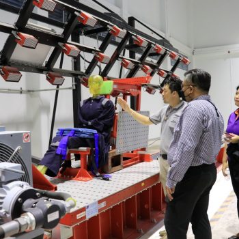 ในโอกาสนี้ผู้บริหารและพนักงาน มว. ได้เข้าเยี่ยมชมศูนย์ทดสอบยานยนต์และยางล้อแห่งชาติ ณ อำเภอสนามชัยเขต จังหวัดฉะเชิงเทรา อาทิ สนามทดสอบยางล้อ UN R117 สนามทดสอบรถยนต์ สนามทดสอบสมรรถนะและความเร็ว สนามทดสอบระบบเบรกมือ และเข้าเยี่ยมชม อาคารทดสอบยางล้อและชิ้นส่วนยานยนต์ เช่น การทดสอบชุดเข็มขัดนิรภัย การทดสอบเบาะที่นั่ง พนักพิงหลัง เป็นต้น เพื่อนำข้อมูลที่ได้ไปใช้ในการพัฒนาความร่วมมือให้ครอบคลุมทุกความต้องการทั้ง 2 ฝ่ายต่อไป
