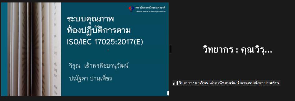 ส่วนฝึกอบรม กลุ่มงานพัฒนาธุรกิจ ฝ่ายนโยบายและยุทธศาสตร์ จัดการอบรมหลักสูตรมาตรวิทยาประจำปีงบประมาณ 2566 ในรูปแบบออนไลน์ ในหัวข้อ “ ระบบคุณภาพห้องปฏิบัติการตาม ISO/IEC 17025:2017(E) รุ่น 4 : ISO/IEC 17025:2017(E) General requirements for the competence of testing and calibration laboratories” ณ ห้องประชุมชั้น 3 อาคารพัฒนามาตรฐานการวัดเพื่อรองรับการพัฒนาระบบราง (มว.) จ.ปทุมธานี เพื่อให้ความรู้แก่ผู้เข้าอบรมทั้งจากภาครัฐ เอกชน และอุตสาหกรรม ที่สนใจต้องการนำความรู้ที่ได้ไปใช้ในการขอการรับรองระบบคุณภาพห้องปฏิบัติการตาม ISO/IEC 17025 บรรยายโดยวิทยากร นายวิรุณ เล้าพรพิชยานุวัฒน์ หัวหน้าฝ่ายมาตรวิทยาเชิงกล และ น.ส.ปณัฐดา ปานเพ็ชร นักมาตรวิทยาชำนาญการพิเศษ กลุ่มงานมาตรฐานปฐมภูมิอุณหภูมิ ฝ่ายมาตรวิทยาอุณหภูมิและแสง ทั้งนี้เพื่อให้ผู้เข้าอบรมมีความรู้ความเข้าใจความหมายและข้อกำหนดของระบบคุณภาพห้องปฏิบัติการ ISO/IEC 17025 และเป็นการเตรียมความพร้อมสำหรับการนำระบบคุณภาพห้องปฏิบัติการ ISO/IEC 17025 ไปปฏิบัติงานจริง ซึ่งหลักสูตรดังกล่าวยังคงได้รับการตอบรับเป็นอย่างดีจากลูกค้าอบรมทั้งในกลุ่มภาคอุตสาหกรรม ราชการ และภาคการศึกษาจากทั่วประเทศ โดยในปีงบประมาณ 2566 นี้ จัดขึ้นเป็นครั้งที่ 4 แล้ว โดยท่านที่สนใจยังสามารถลงทะเบียนหลักสูตรนี้และหลักสูตรอื่นๆ ได้ที่หน้าเว็บไซต์สถาบันมาตรวิทยาแห่งชาติ