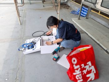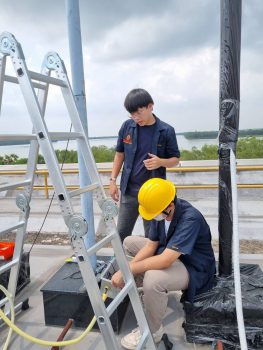 - บรรยากาศในการติดตั้งอุปกรณ์บนดาดฟ้าอาคารผดุงมาตร