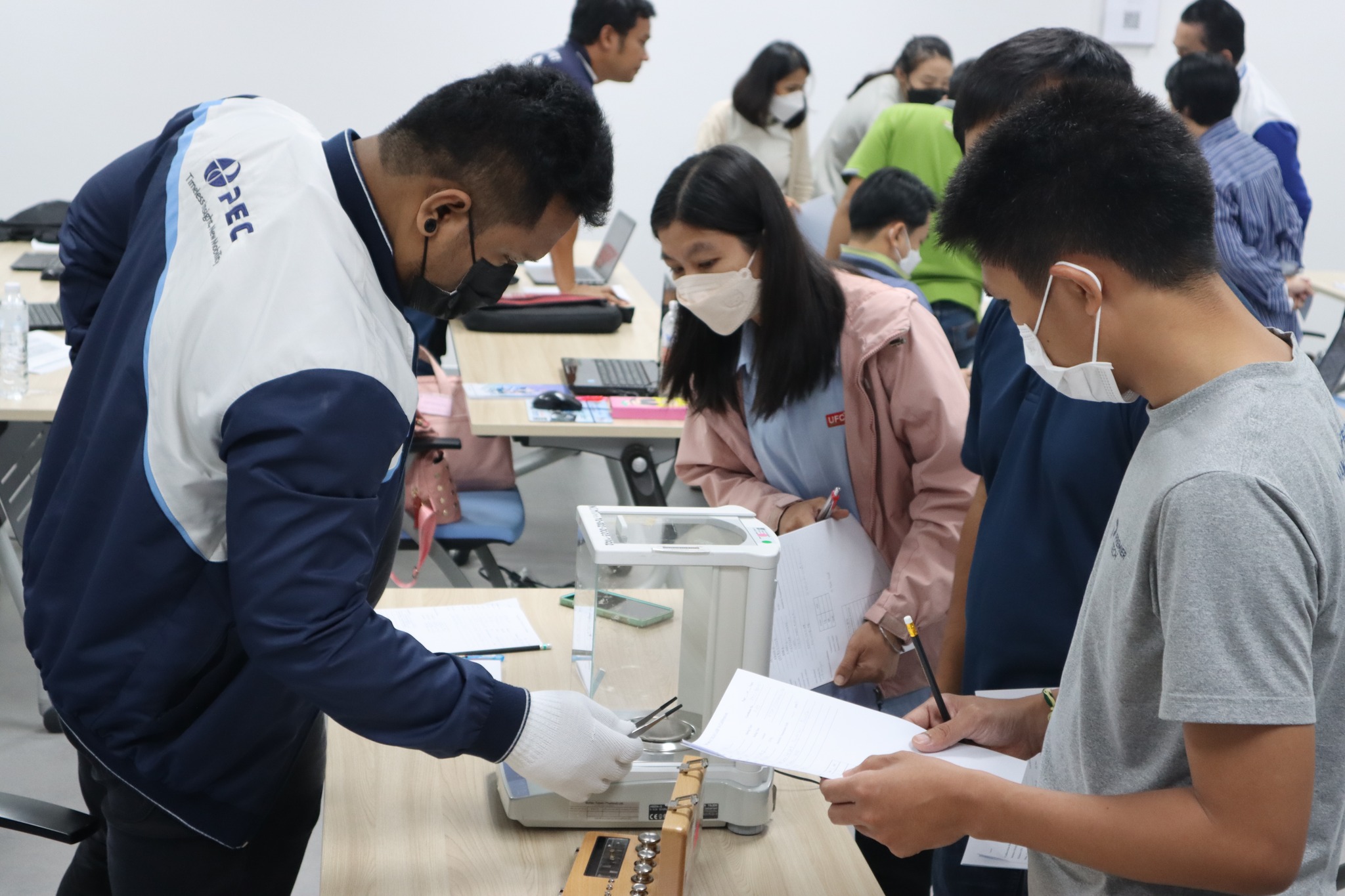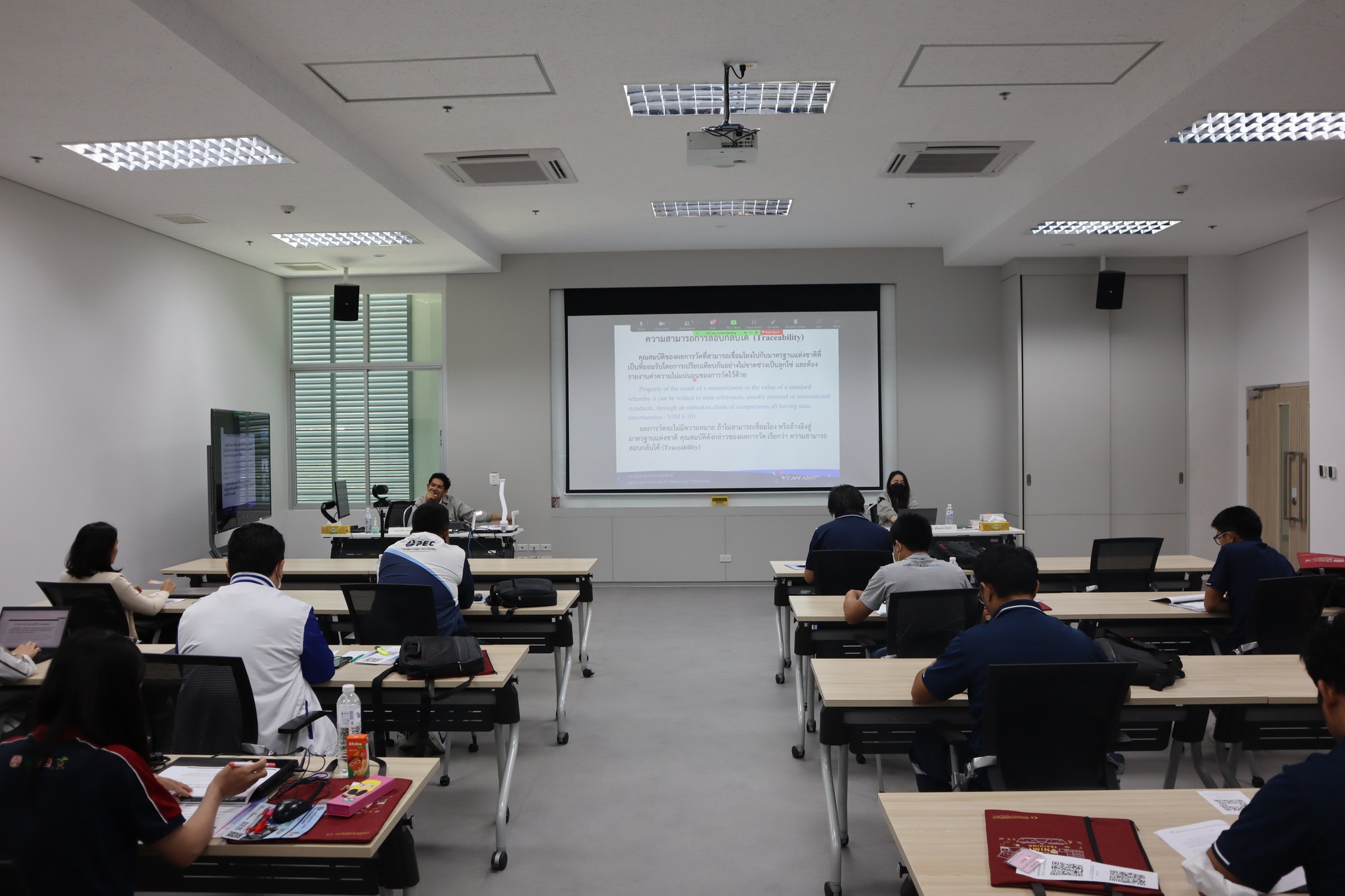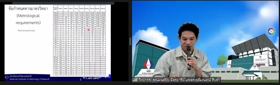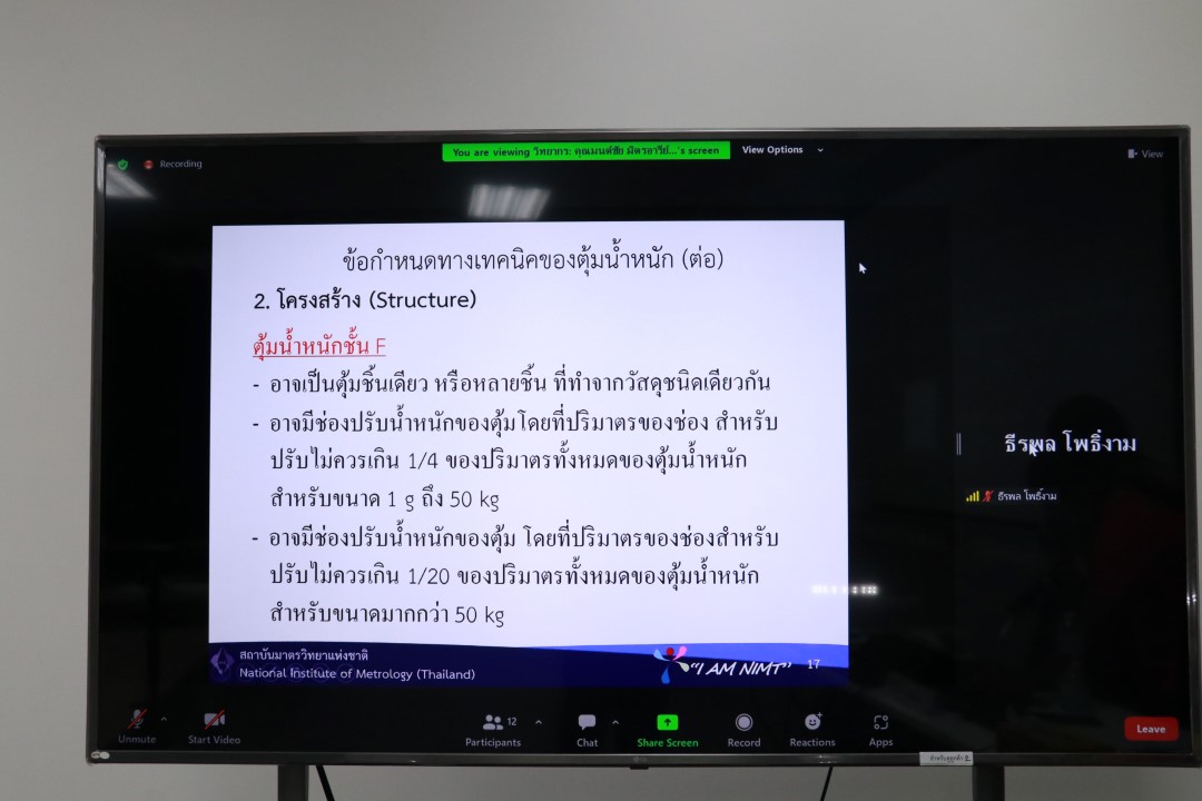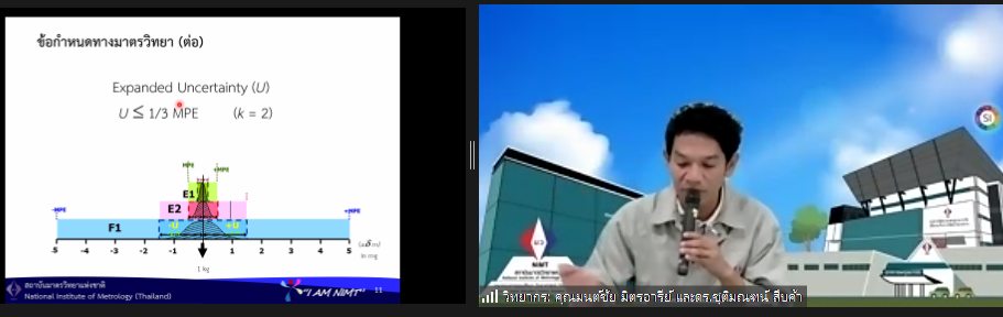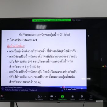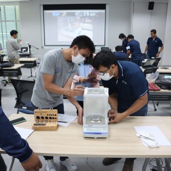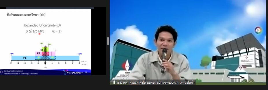 ส่วนฝึกอบรม กลุ่มงานพัฒนาธุรกิจ ฝ่ายนโยบายและยุทธศาสตร์ จัดการอบรมหลักสูตรมาตรวิทยาประจำปี 2566 หลักสูตร “การสอบเทียบเครื่องชั่งอิเล็กทรอนิกส์ ตามมาตรฐาน UKAS LAB 14 รุ่นที่ 2” ในรูปแบบ Hybrid Learning ที่ให้ผู้เข้าอบรมสามารถเลือกเข้าอบรมแบบ On-site ณ สถาบันมาตรวิทยาแห่งชาติ (คลองห้า) และการอบรมในรูปแบบ Online โดยผู้เข้าอบรมจะสามารถสังเกตได้จากสัญลักษณ์ Hybrid Learning ทั้งนี้เพื่อให้ผู้เข้าอบรมทั้งจากภาครัฐ เอกชน และอุตสาหกรรมมีความรู้ความเข้าใจในงานมาตรวิทยามวล หลักการพื้นฐานและจำแนกชนิดของเครื่องชั่งได้ และสามารถบอกปัจจัยที่มีผลต่อการสอบเทียบเครื่องชั่งและวิธีการตรวจเช็คเครื่องชั่งประจำวันก่อนการใช้งานได้ พร้อมทั้งเข้าใจขั้นตอนและสามารถสอบเทียบเครื่องชั่งด้วยวิธี UKAS LAB 14 ได้ และสามารถคำนวนและประเมินค่าความไม่แน่นอนของผลการสอบเทียบได้ และสามารถออกใบรับรองผลการสอบเทียบและนำผลรายงานการสอบเทียบไปใช้ได้อย่างเข้าใจ บรรยายโดย นายมนต์ชัย มิตรอารีย์ (วิทยากร) นักมาตรวิทยาชำนาญการพิเศษ และดร.ชุติมณฑน์ สืบค้า (ผู้ช่วยวิทยากร) นักมาตรวิทยาปฏิบัติการ กลุ่มงานมาตรฐานปฐมภูมิมวลและปริมาณที่เกี่ยวข้อง ฝ่ายมาตรวิทยาเชิงกล โดยผู้เข้ารับการอบรมจะได้เรียนรู้เนื้อหาทั้งในภาคทฤษฎี และภาคปฏิบัติในการสอบเทียบเครื่องชั่งด้วยวิธี UKAS LAB 14 พร้อมทั้งการตอบข้อซัก-ถาม เพื่อให้ผู้เข้าอบรมสามารถนำความรู้ที่ได้ไปประยุกต์ใช้ในการปฏิบัติงานได้จริง ณ ห้องประชุมชั้น 3 อาคารพัฒนามาตรฐานการวัดเพื่อรองรับการพัฒนาระบบราง (มว.) จ.ปทุมธานี
