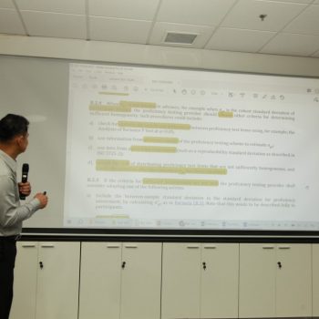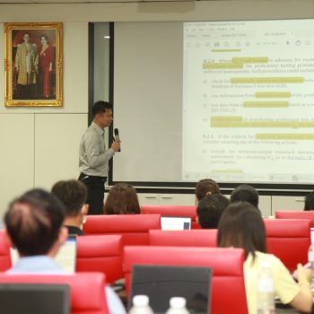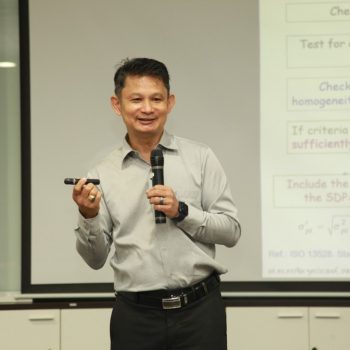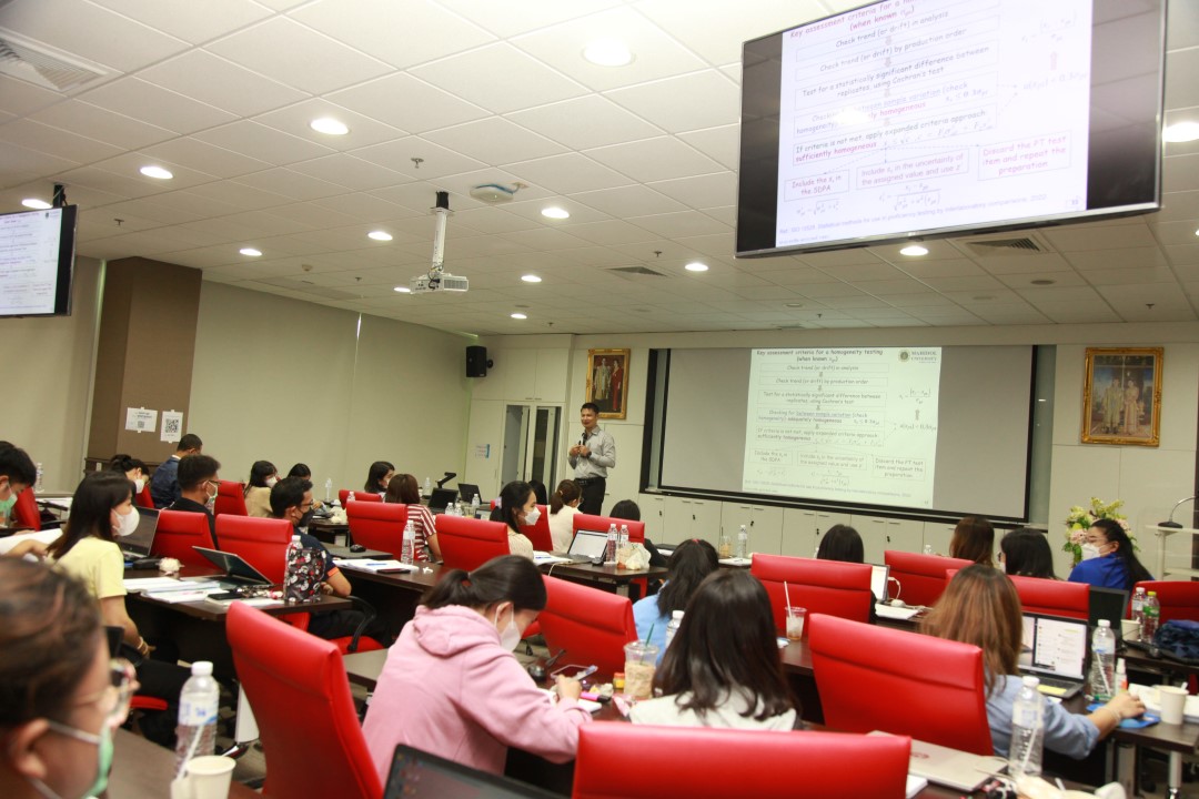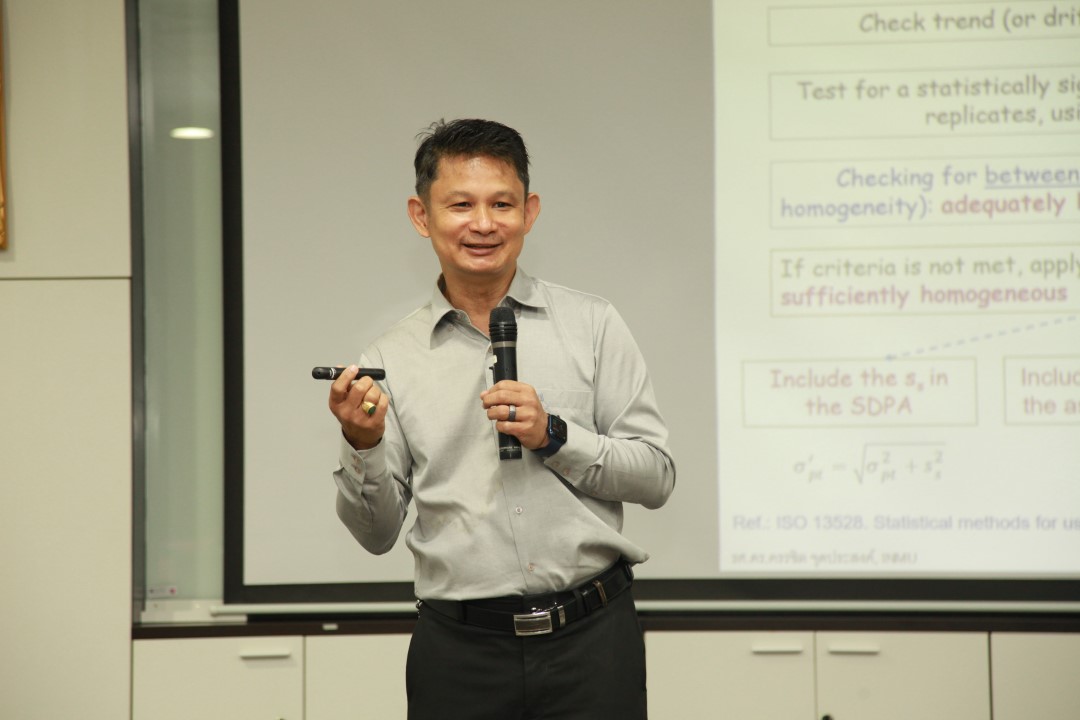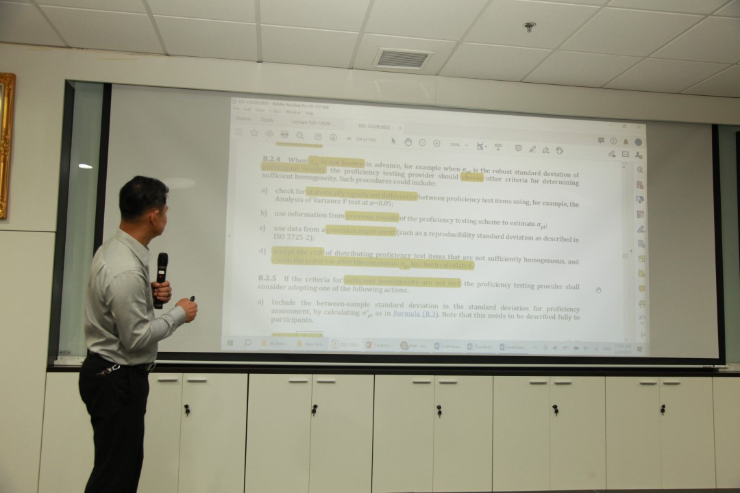 คณะทำงานพัฒนากิจกรรมการเปรียบเทียบผลการวัดระหว่างห้องปฏิบัติการ และการผลิตวัสดุอ้างอิงของประเทศ จัดการอบรมหลักสูตร “ข้อกำหนดและสถิติที่ใช้ในโปรแกรมการทดสอบความชำนาญของห้องปฏิบัติการ ตามมาตรฐาน ISO13528:2022 ขั้นสูง” ให้แก่ผู้เข้าอบรมทั้งจากภาครัฐและเอกชน บรรยายโดย รศ.ดร.ครรชิต จุดประสงค์ สถาบันโภชนาการ มหาวิทยาลัยมหิดล ซึ่งการอบรมในครั้งนี้เป็นส่วนหนึ่งในกิจกรรมเพื่อสร้างความเข้มแข็งด้านการวัดให้กับห้องปฏิบัติการทดสอบและสอบเทียบในประเทศ ซึ่งเป็นกลไกที่สำคัญอย่างหนึ่งในการพัฒนาเครือข่ายโครงสร้างพื้นฐานทางคุณภาพของประเทศ และเพื่อส่งเสริมคุณภาพชีวิตและพัฒนาเศรษฐกิจไทย