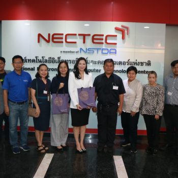 นายอนุสรณ์ ทนหมื่นไวย รองผู้อำนวยการ มว. พร้อมคณะ เข้าพบ คุณศันสนีย์ ฮวบสมบูรณ์ ผู้อำนวยการศูนย์พัฒนาผู้ประกอบการธุรกิจเทคโนโลยี (BIC), คุณชมพูนุช อนุศาสน์สิทธิกิจ ฝ่ายพัฒนาธุรกิจและคลัสเตอร์นวัตกรรม (BCD) สวทช. และทีมงาน เพื่อร่วมปรึกษาหารือและรับคำแนะนำในโครงการร่วมทุนงานวิจัยกับหน่วยงานภายนอก พร้อมทั้งเข้าเยี่ยมชมโครงการสำคัญของ สวทช. ณ ศูนย์เทคโนโลยีอิเล็กทรอนิกส์และคอมพิวเตอร์แห่งชาติ (เนคเทค) สวทช. จังหวัดปทุมธานี