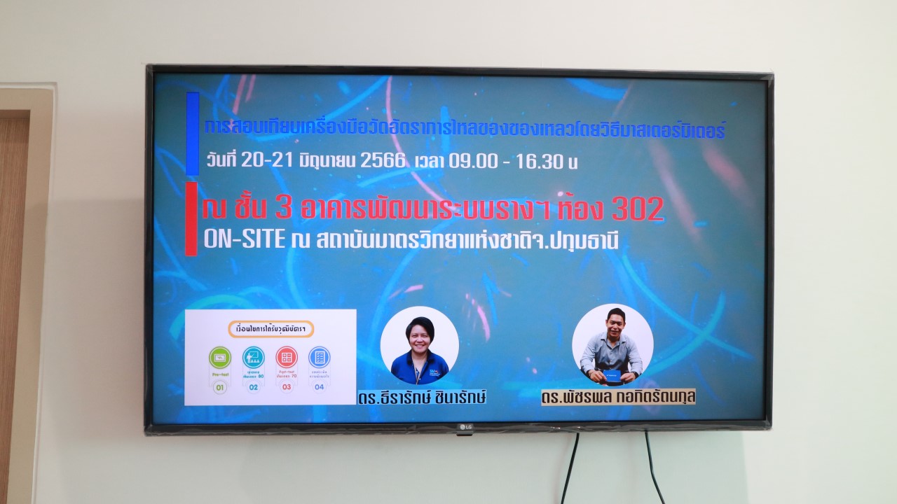 ส่วนฝึกอบรม กลุ่มงานพัฒนาธุรกิจ ฝ่ายนโยบายและยุทธศาสตร์ จัดการอบรมหลักสูตรมาตรวิทยาประจำปี 2566 หลักสูตร “การสอบเทียบเครื่องมือวัดอัตราการไหลของของเหลว : Liquid Flow Calibration by Master Meter Method” ที่เหมาะสำหรับผู้ที่ปฏิบัติงานเกี่ยวข้องกับการสอบเทียบมาตรวัดน้ำและผู้ที่สนใจทั่วไป ทั้งนี้เพื่อให้ผู้เข้าอบรมทั้งจากภาครัฐ เอกชน และอุตสาหกรรม สามารถสอบเทียบมาตรวัดน้ำได้อย่างเหมาะสม และมีความเข้าใจเกี่ยวกับค่า Error, Correction และค่าความไม่แน่นอนของการวัด รวมไปถึงสามารถสอบเทียบมาตรวัดน้ำได้ตามวิธีมาตรฐาน และนำใบรายงานผลการสอบเทียบไปใช้ได้อย่างถูกต้อง